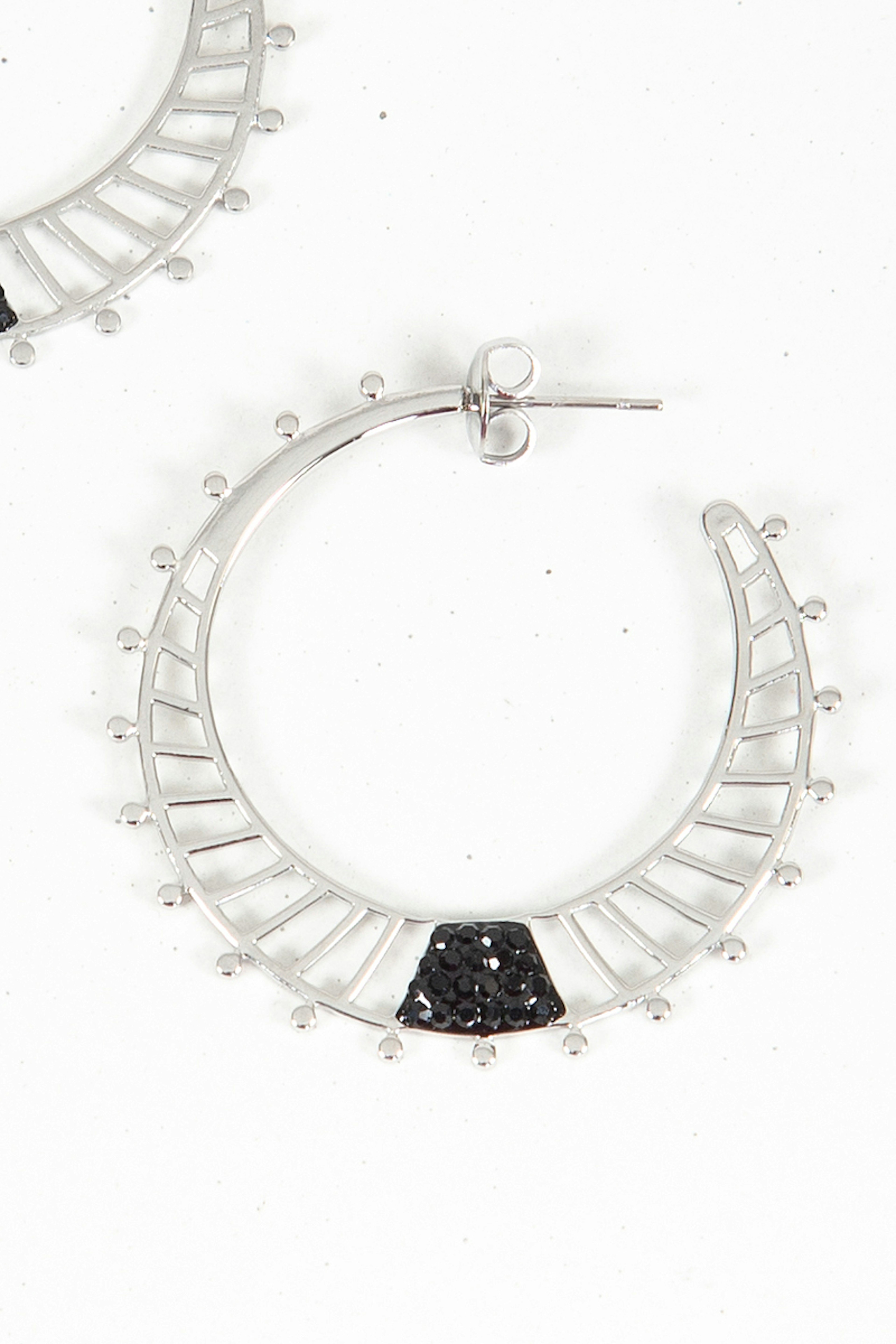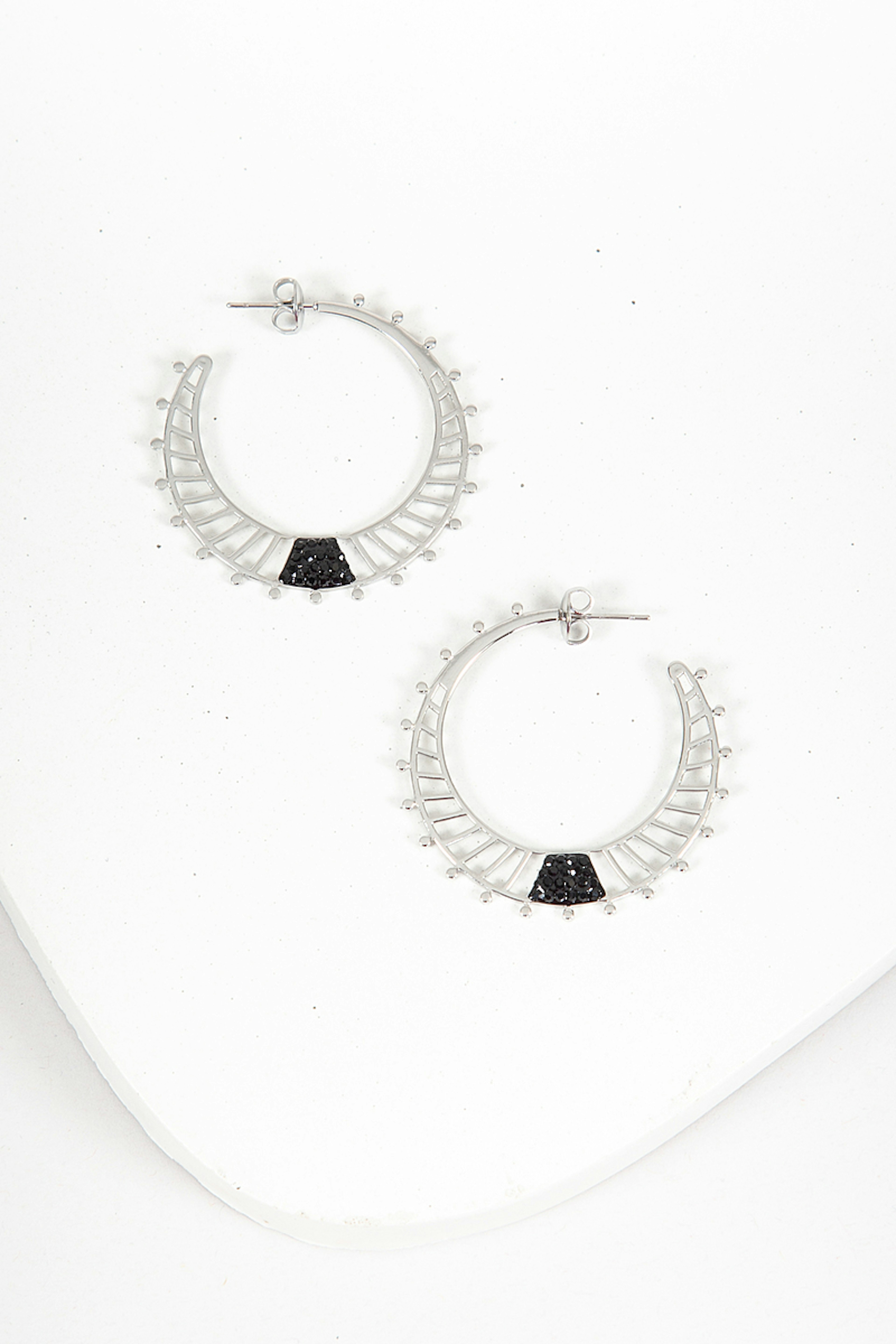 Optez pour ces boucles d'oreilles crรฉoles couleur argent et ses strass noirs lui apportant de la fรฉminitรฉ. โข Acier Inoxydable โข Strass noirs