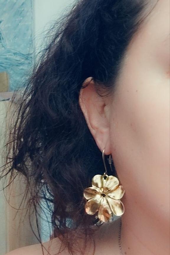 โข Boucles d'oreilles dorรฉes en forme de fleurs โข 100% Acier inoxydable