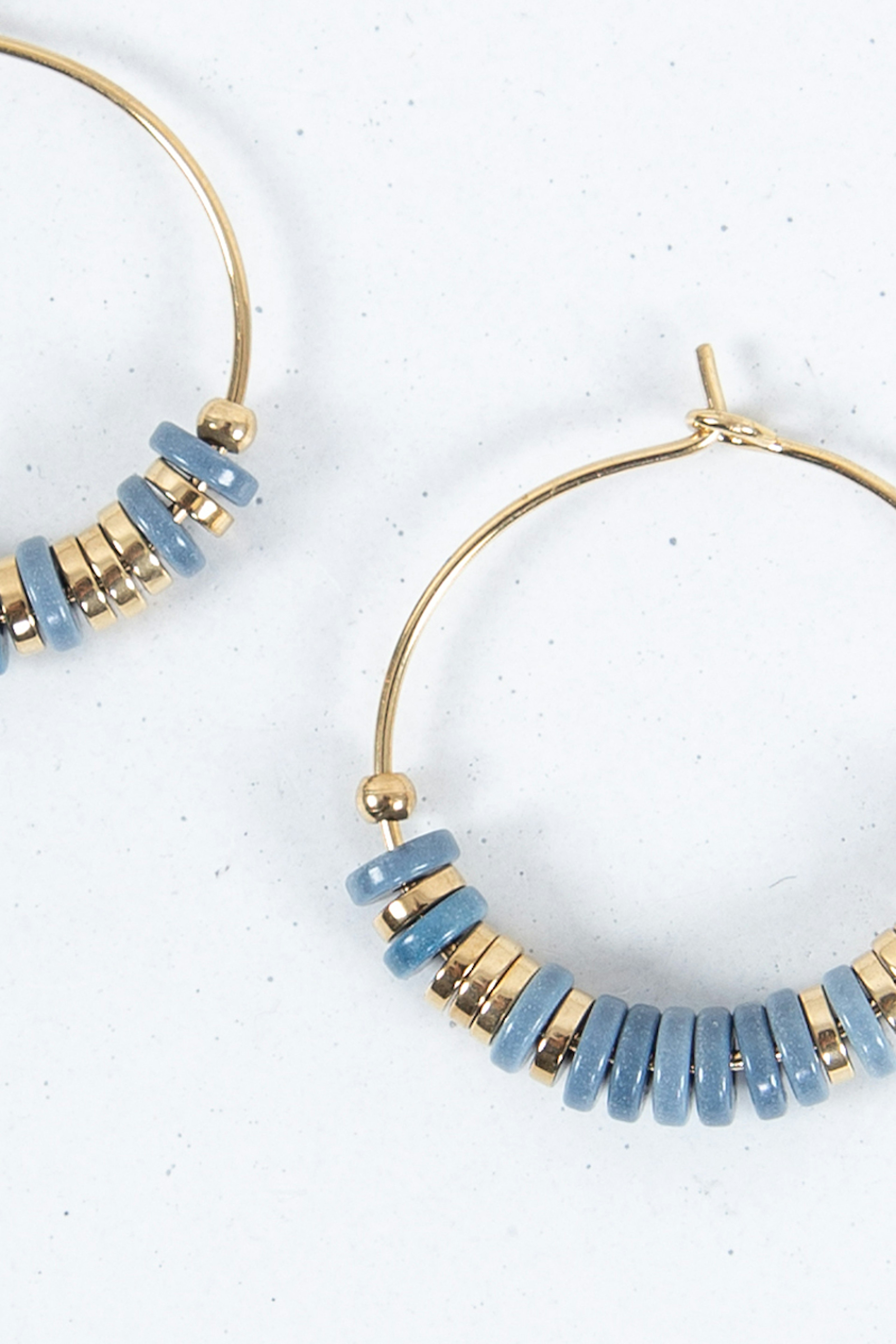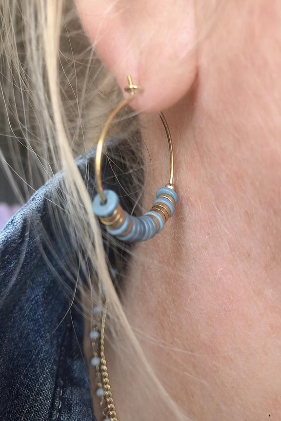 โข Boucles d'oreilles crรฉoles fantaisie โข Dรฉtails de perles plates bleues et blanches sur l'anneau Bohm est une marque de bijoux fantaisie au design graphique et intemporel. Ses bijoux en acier inoxydable sont crรฉรฉs dans son atelier parisien et chaque cristal est certifiรฉ Swarovski.