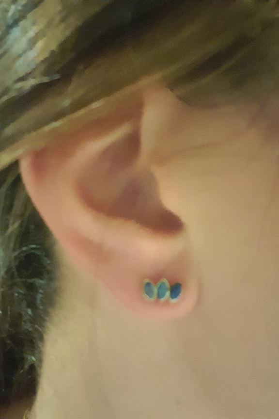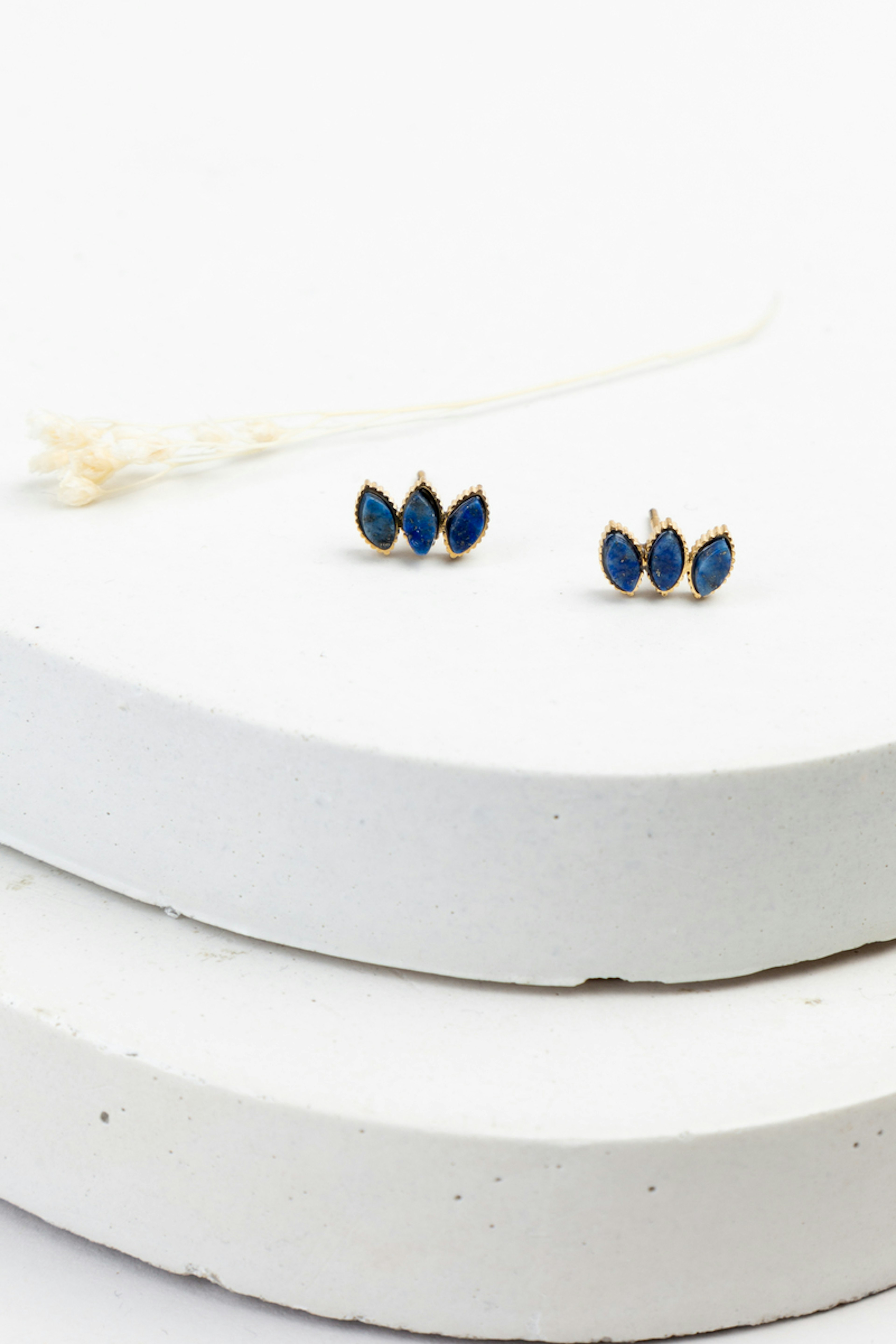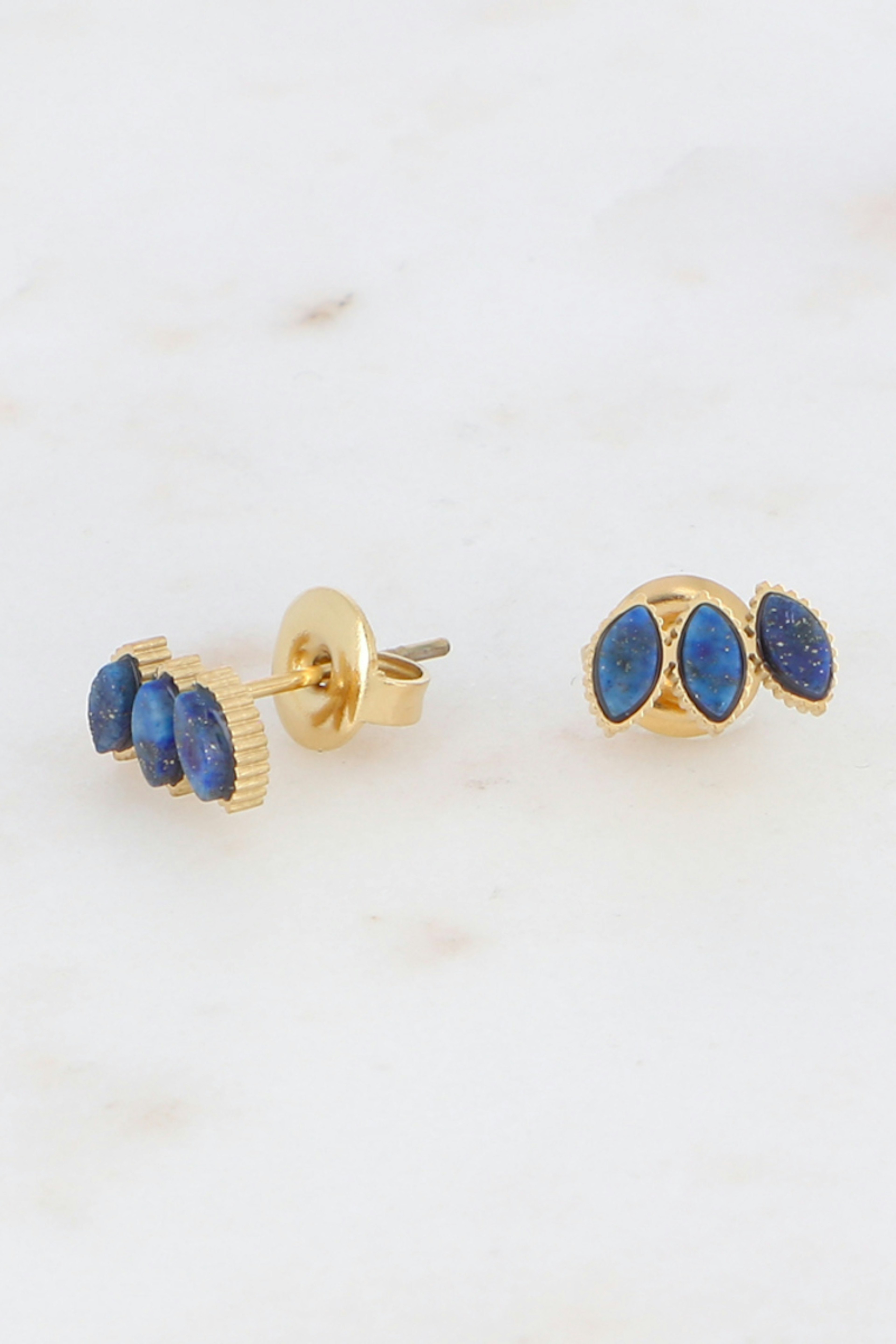 โข Boucles d'oreilles puces en acier inoxydable โข Composรฉes de trois pierres naturelles losanges en lapis lazuli โข Dimensions : 9 x 5 mm โข Rรฉsiste ร lโeau et ne noircit pas