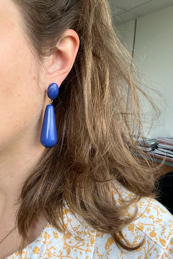 Osez la fantaisie avec ces boucles d'oreilles en bleu รฉlectrique en acรฉtate. โข Dรฉtails goutte ovale bombรฉe โข Poussoir papillon, adaptรฉes aux oreilles percรฉes โข Longueur: 5,5 cm โข Puce : diamรจtre 8 mm