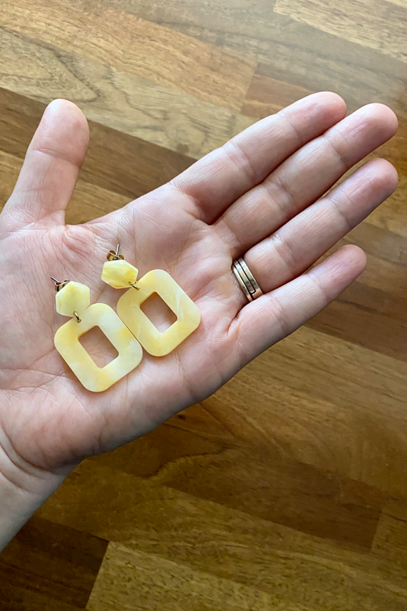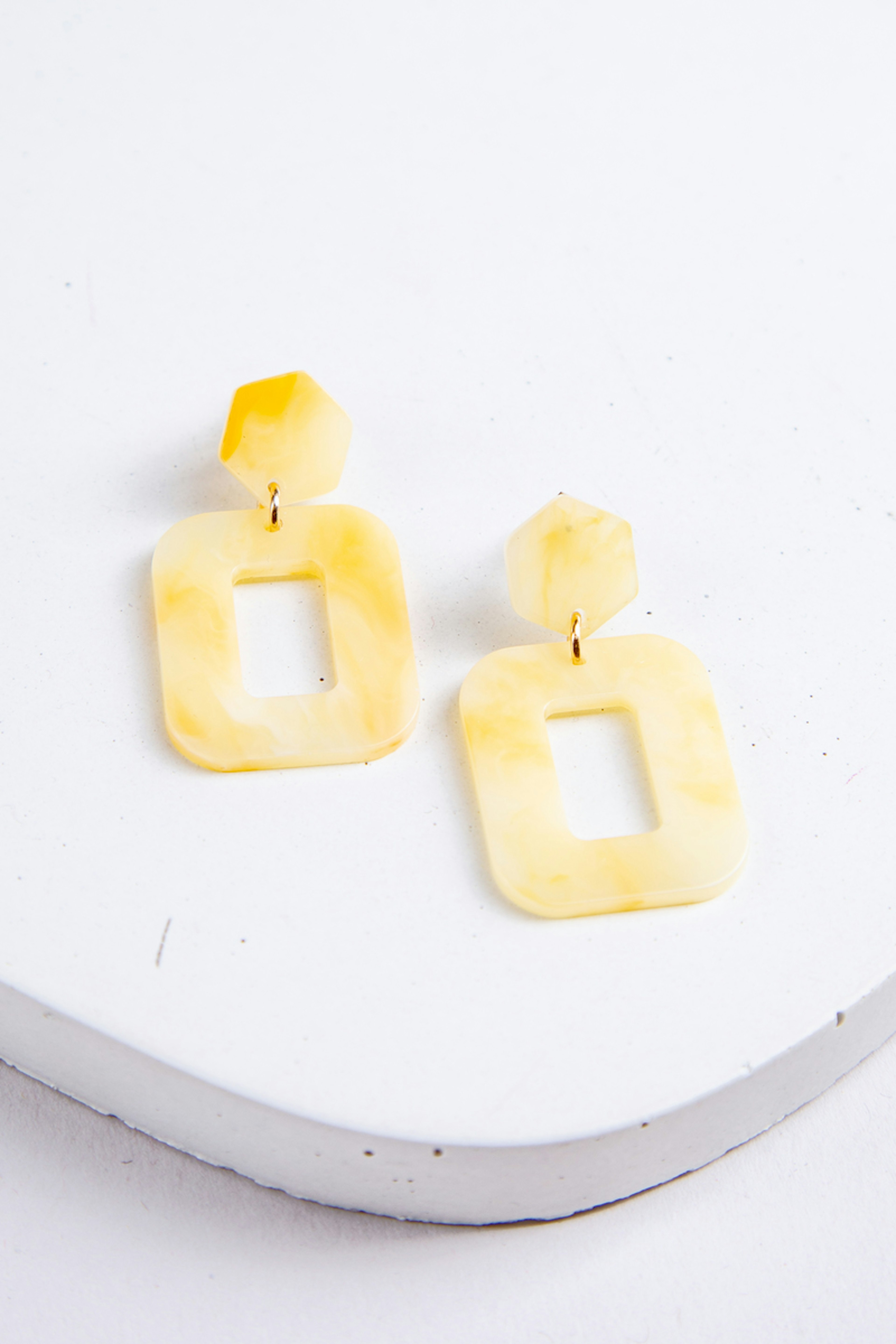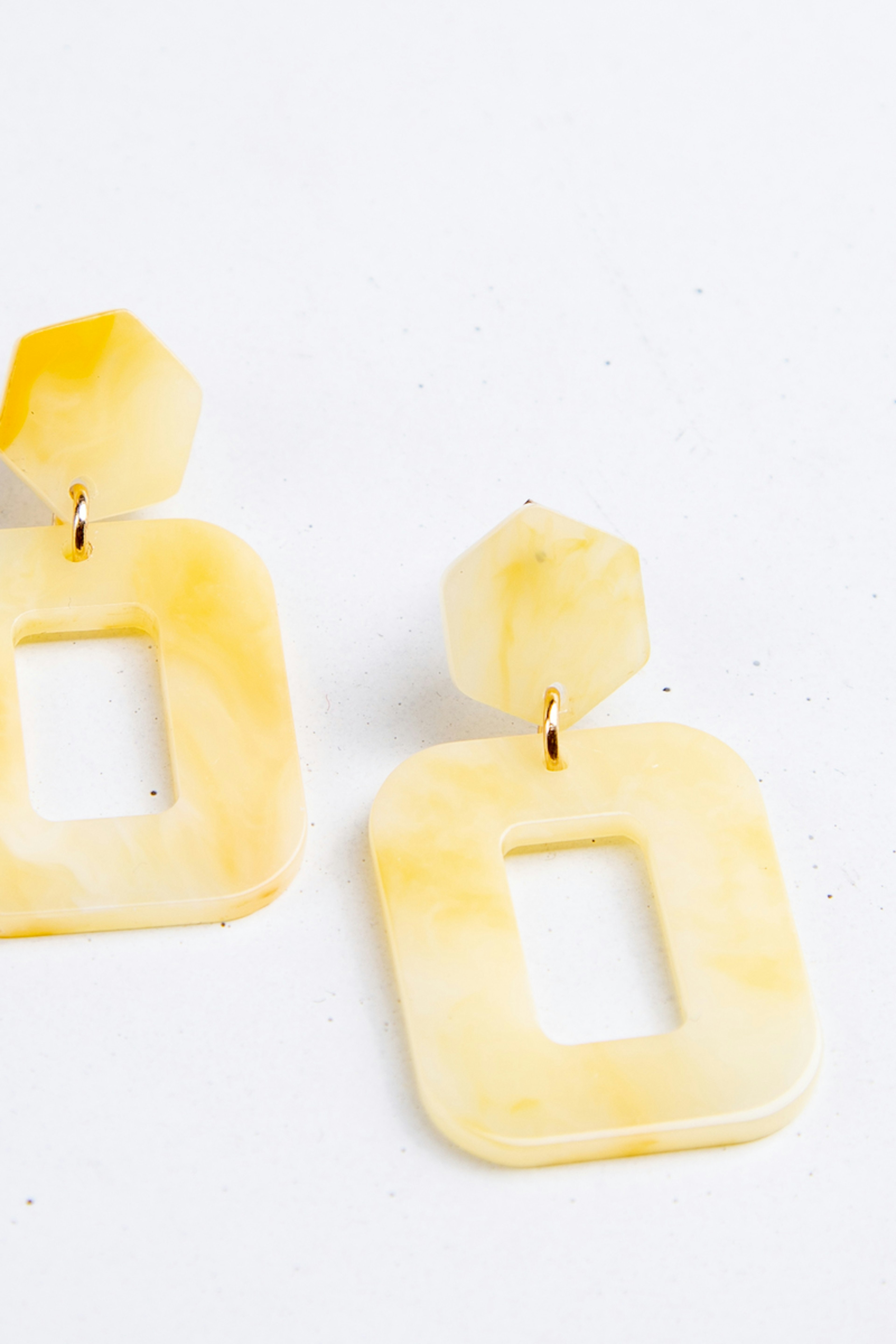 C'est la grande tendance des bijoux gรฉomรฉtriques et colorรฉs. On craque pour les boucles d'oreilles Hyda. โข Boucles d'oreille graphiques jaunes โข Look rรฉtro โข Composition: 95% Acetate, 5% Titane