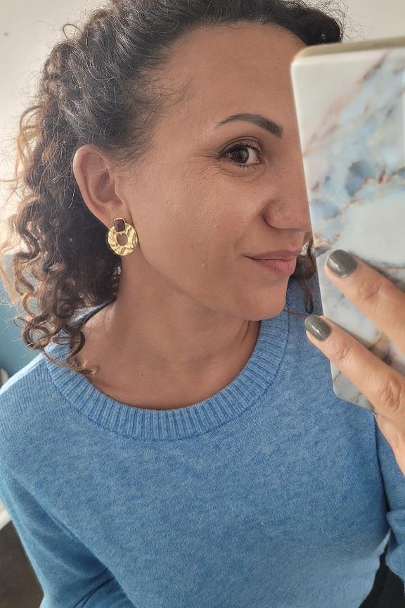 Ces boucles d'oreilles dorées ajouteront une touche d'élégance à toutes vos tenues, parfaites avec une coiffure relevée pour un look sophistiqué. Parfaites en toute saison. • Boucles d'oreilles en acier inoxydable • Forme ronde élégante • Détails géométriques modernes • Couleur dorée brillante • Design contemporain et féminin
