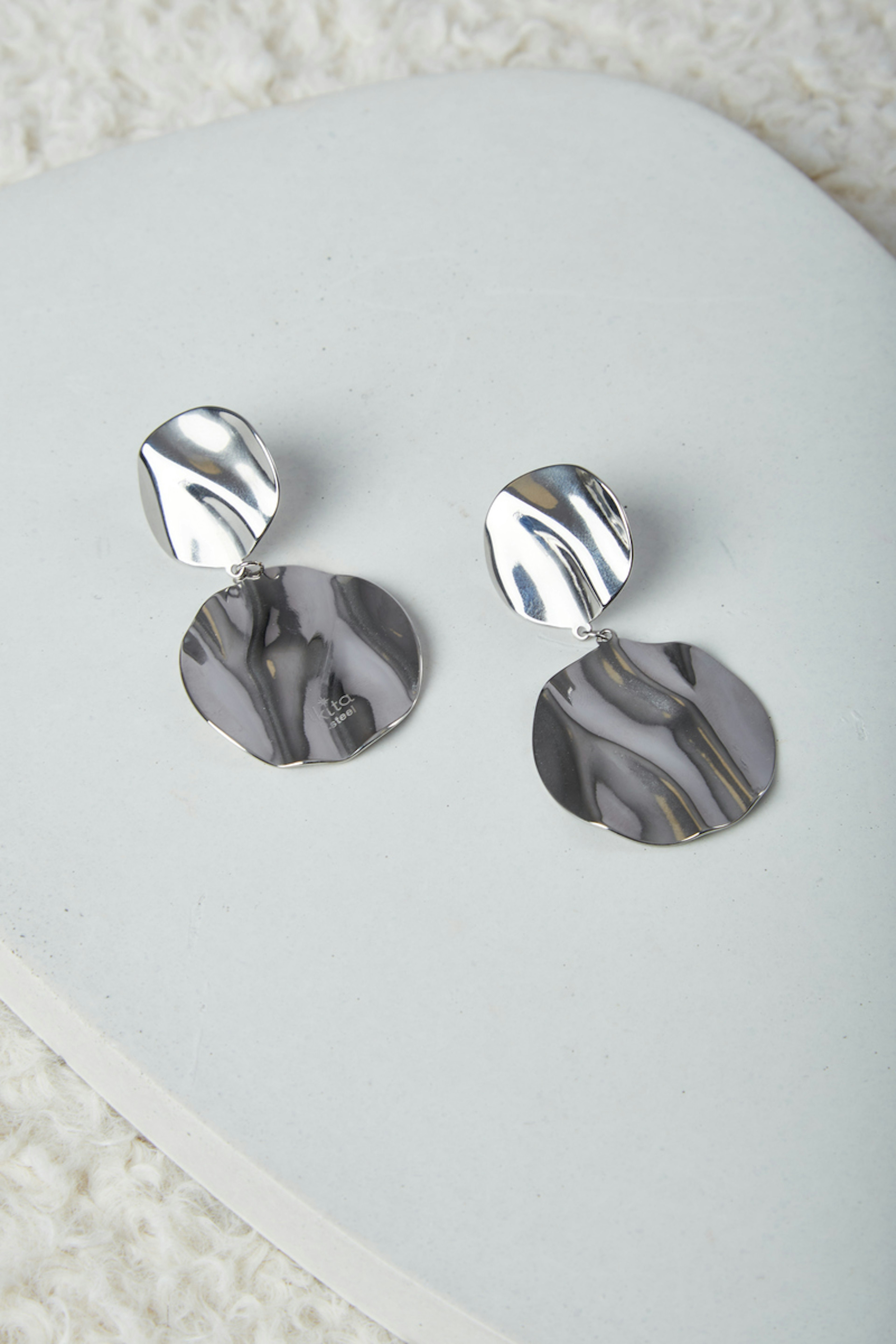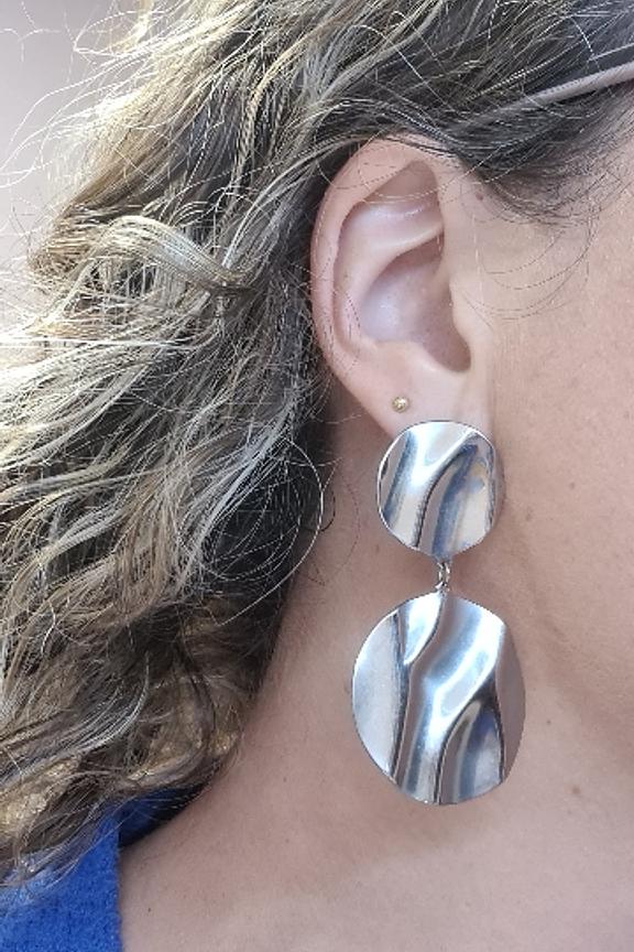โข Boucles d'oreilles argentรฉes ร puces avec double empiรจcement arrondi texturรฉ โข Matiรจre : Acier inoxydable. โข Hypoallergรฉnique, ce bijou rรฉsiste ร l'eau et ne se noircit pas โข Bijoux garantis sans nickel, sans sel de plomb et sans cadmium