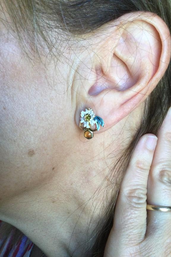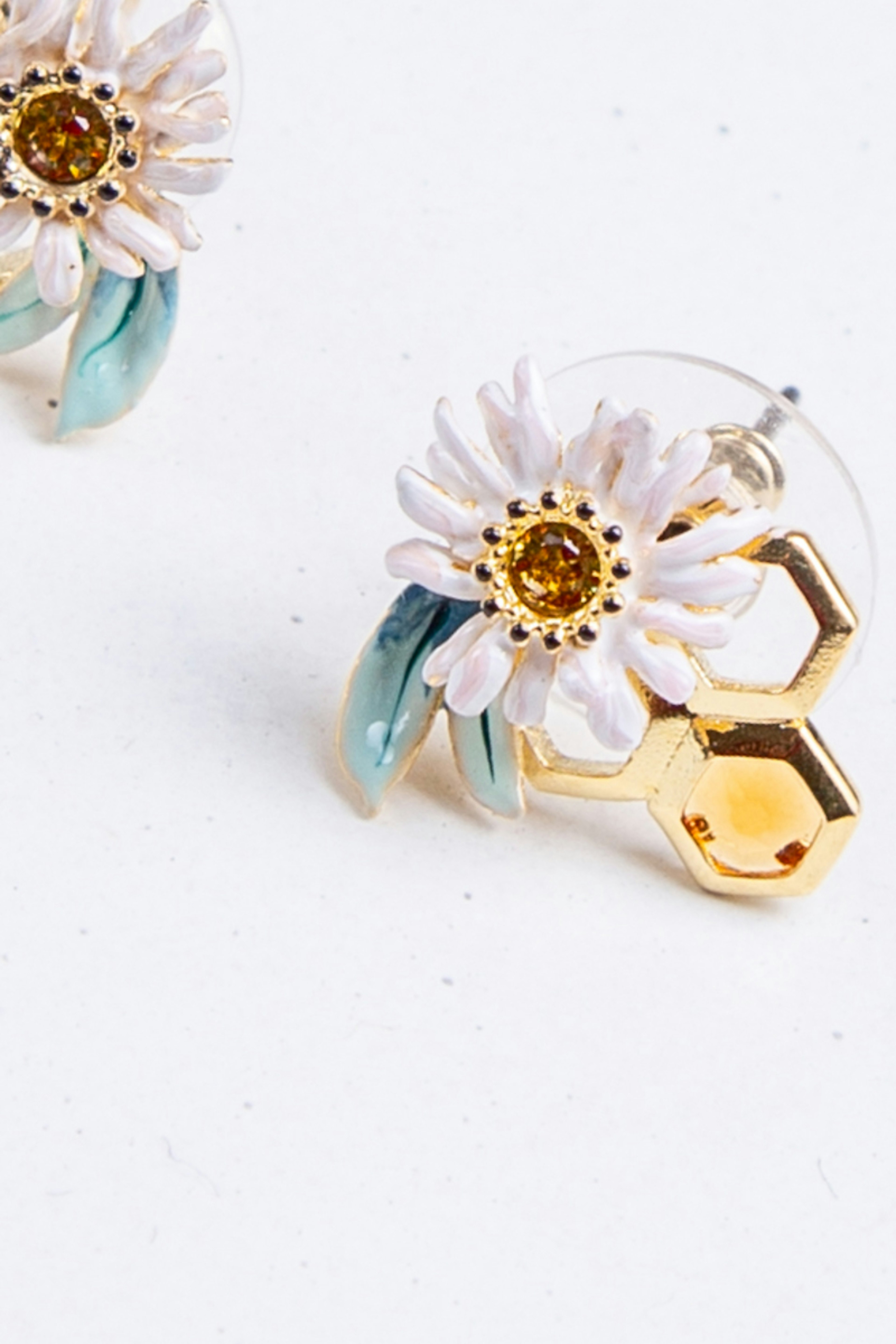 โ€ข Boucles d'oreilles ร  tige fleuries motif alvรฉole d'abeille โ€ข Laiton dorรฉ ร  l'or fin โ€ข Cristal taillรฉ โ€ข Longueur : 1,7 cm โ€ข Largeur : 1,5 cm โ€ข Profondeur : 1,6 cm โ€ข Poids : 2,4 g