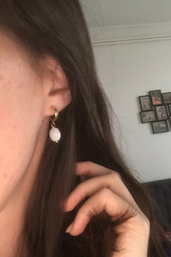 Boucles d'oreilles type crรฉoles composรฉes d'une pierre naturelle. โข Dimensions de la crรฉole : 10 x 11 mm โข Dimensions du pendant : 8 x 10 mm โข Dimensions de la boucle : 8 x 28 mm โข Garantie sans nickel, sans cadmium, sans sel de plomb. โข Rรฉsiste ร lโeau et ne noircit pas. โข รtant des pierres naturelles, leurs couleurs et leur taille peuvent varier dโune pierre ร lโautre.