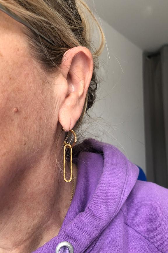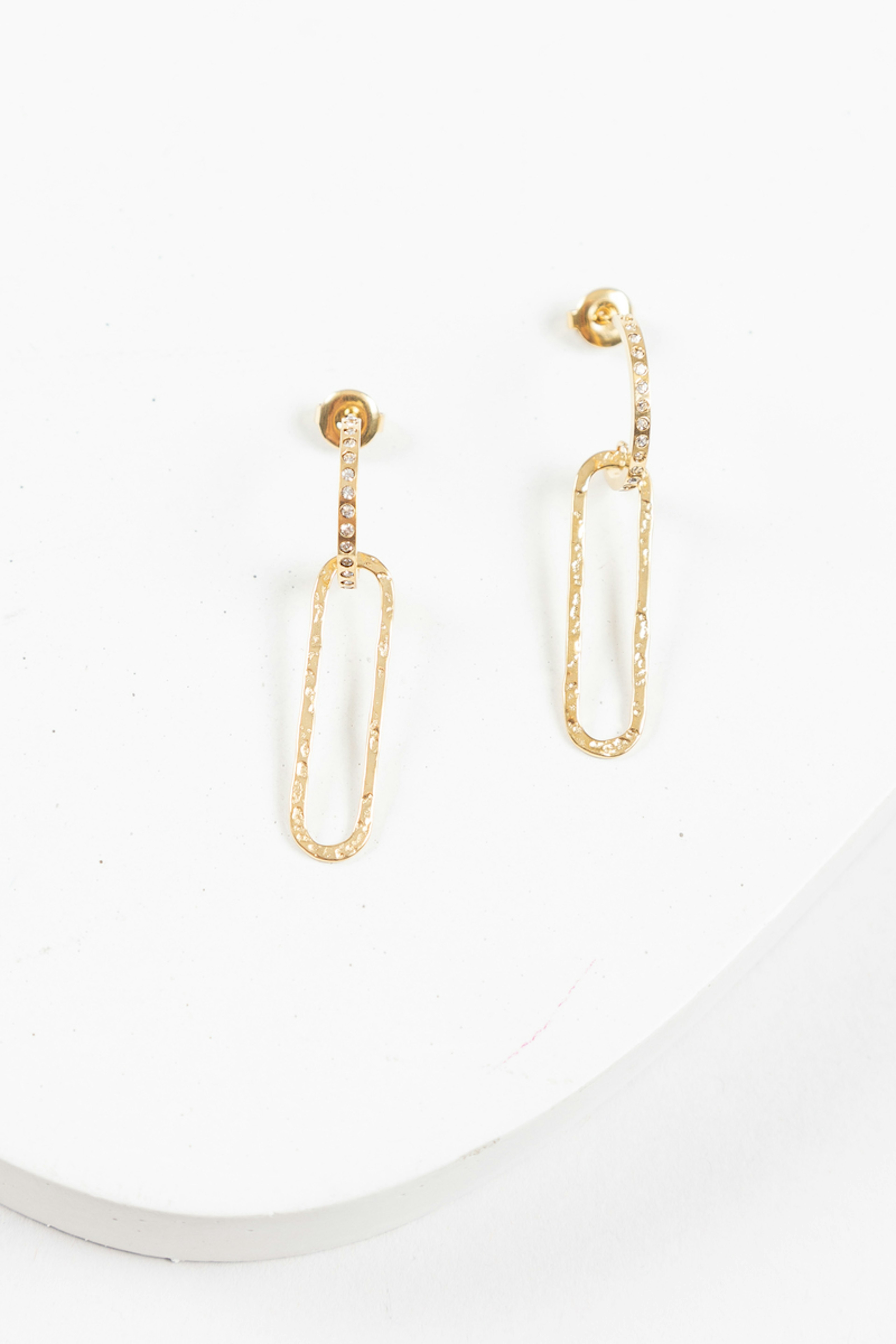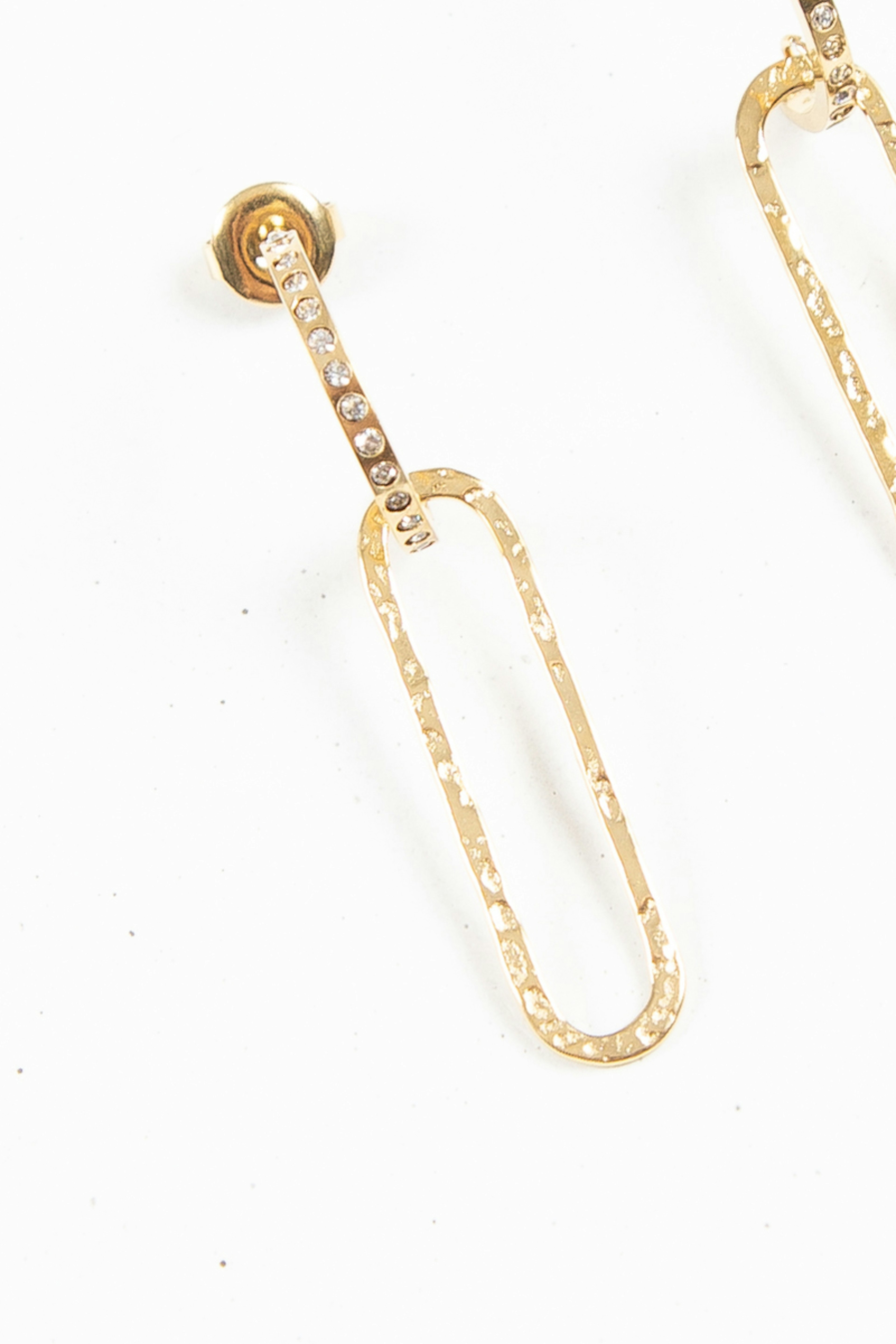 Boucles d'oreilles de types crรฉoles ร puce composรฉes de strass et d'un pendentif graphique martelรฉ . โข Fermoir papillon โข Dimension : 0,8 x 4 cm. (diamรจtre: 1,5 cm) โข Matiรจre : Acier inoxydable โข Hypoallergรฉnique, ce bijou rรฉsiste ร l'eau et ne noircit pas