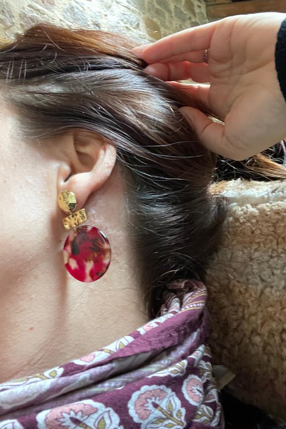 Ajoutez une touche de sophistication ร votre look avec ces boucles d'oreilles รฉclatantes, idรฉales pour rehausser vos tenues en toute saison. โข Boucles d'oreilles en acier inoxydable โข Forme pendante รฉlรฉgante โข Dรฉtails mรฉtalliques dorรฉs โข Cercle rouge marbrรฉ โข Fermeture sรฉcurisรฉe et confortable