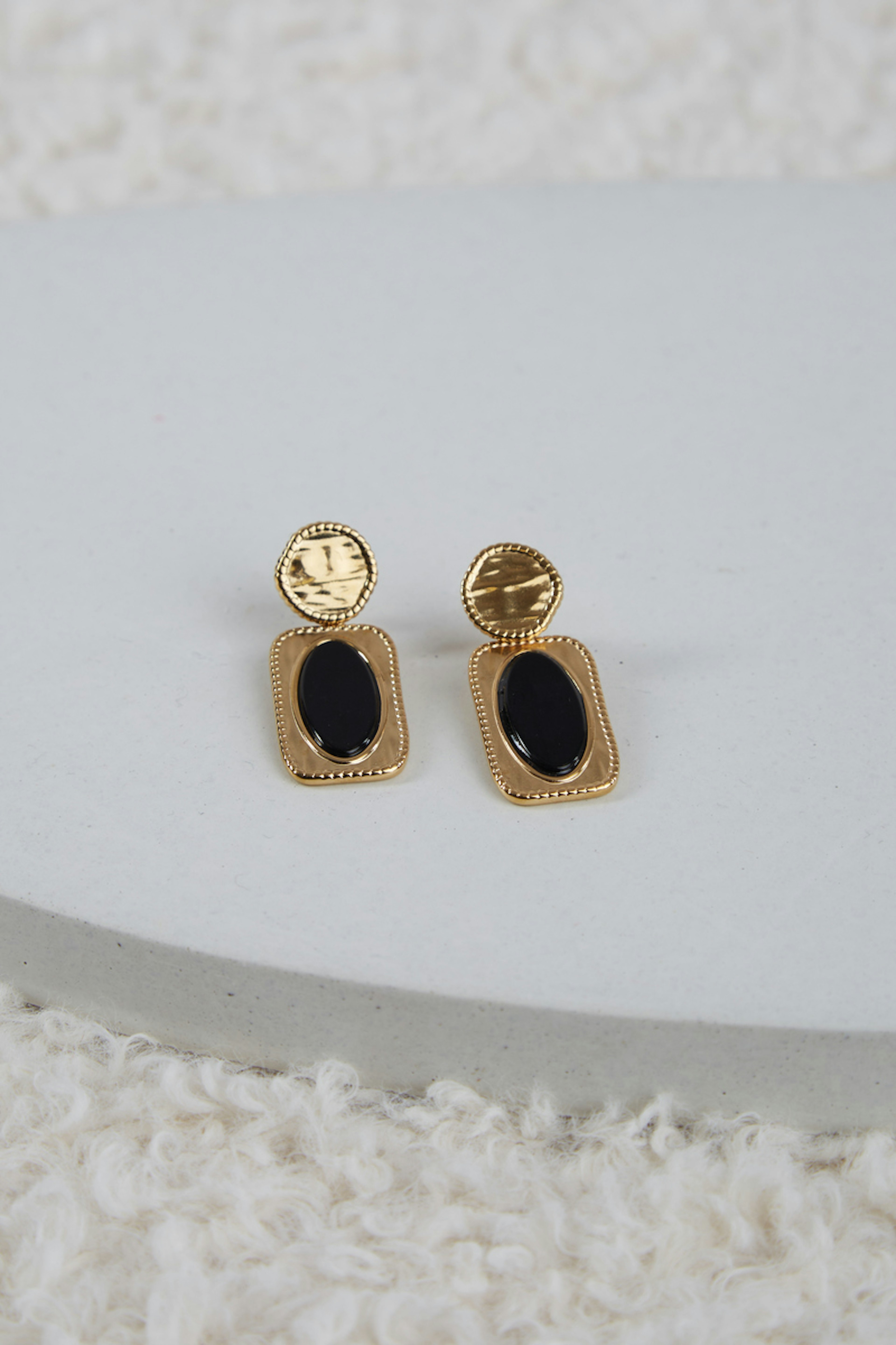 โข Boucles d'oreilles ร puce composรฉes d'une pierre naturelle ovale sur un rectangle texturรฉ โข Dimensions de la boucle : 15 x 37 mm โข Garantie sans nickel, sans cadmium, sans sel de plomb โข Rรฉsiste ร lโeau et ne noircit pas