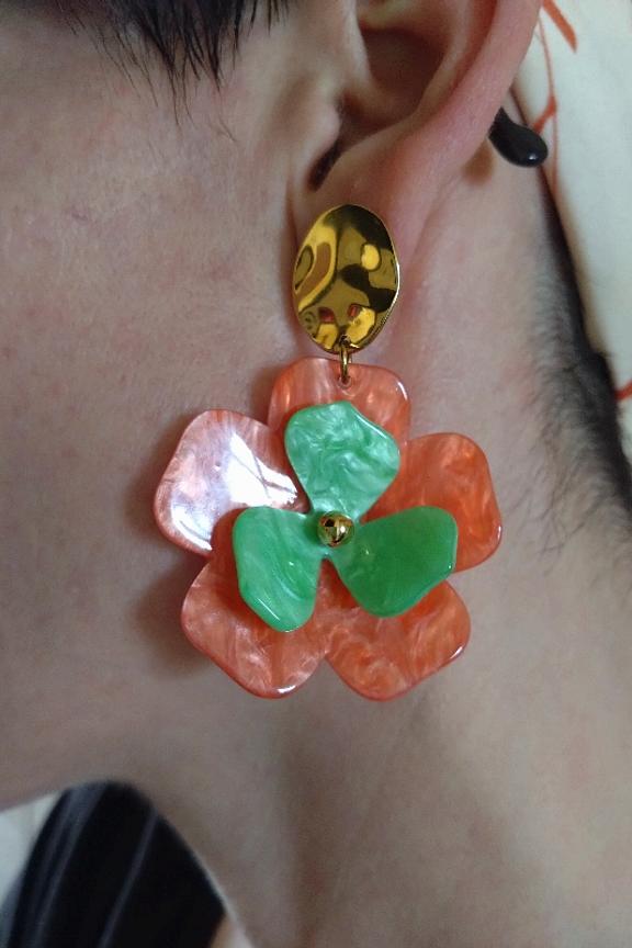 Ces boucles d'oreilles apporteront une touche de gaietรฉ ร toute tenue, idรฉales en toute saison. โข Boucles d'oreilles florales โข Palette orange vif et vert