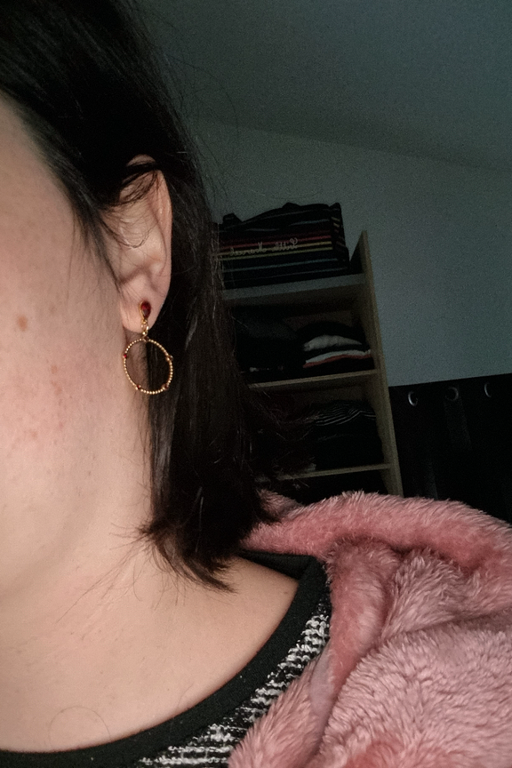 โles boucles รฉtaient un peu plus grandes que je pensais et les strass rouge font un peu plastique en fait...โ