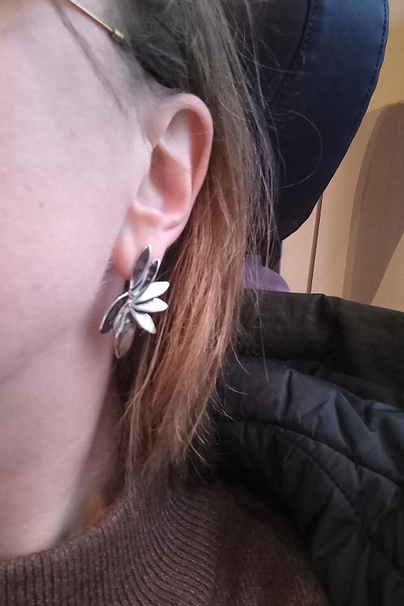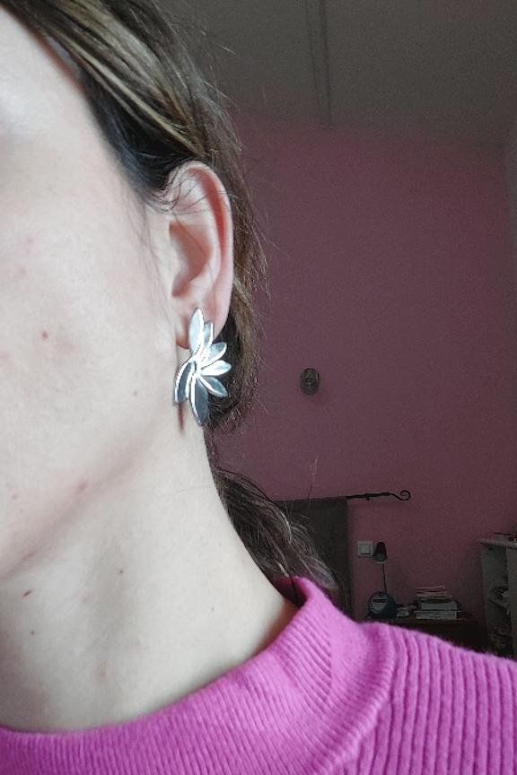 โข Boucles d'oreilles Zetta โข Couleur argent โข Forme de fleur โข Acier inoxydable
