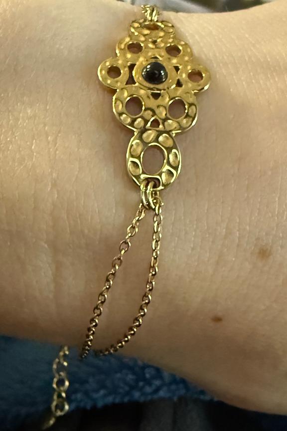 Associez ce bracelet en acier doré à une tenue élégante ou décontractée. Il apporte une touche d'élégance en toute saison. • Bracelet en acier inoxydable • Chaîne fine et délicate • Motif géométrique central • Fermoir ajustable • Finition dorée lustrée