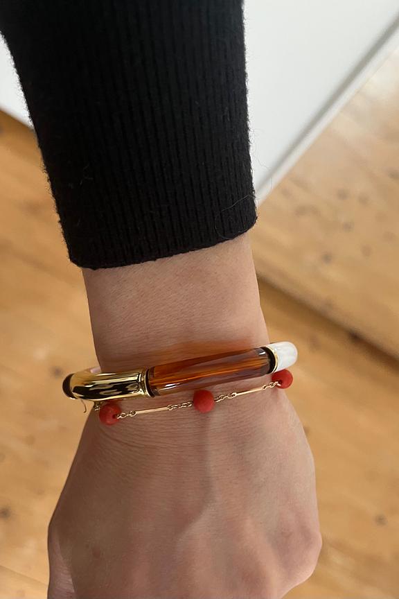 Ajoutez une touche de chic à votre tenue avec ce bracelet raffiné. Portez-le avec un pull en laine pour un style cosy et sophistiqué. Parfait en toute saison. • Bracelet • Teinte marron • Détails dorés • Design élégant • Fermeture discrète