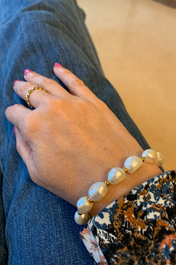 Bracelet rรฉglable composรฉ d'un joli enfilage de perles en perles d'eau douce โข Dimension : 15,5 + 3 cm โข Matiรจre : Acier inoxydable โข Hypoallergรฉnique, ce bijou rรฉsiste ร l'eau et ne noircit pas