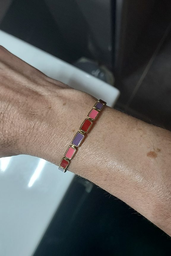 โข Bracelet dorรฉ ajustable โข Pierres de couleurs rectangulaires incrustรฉes โข Conรงu en acier inoxydable