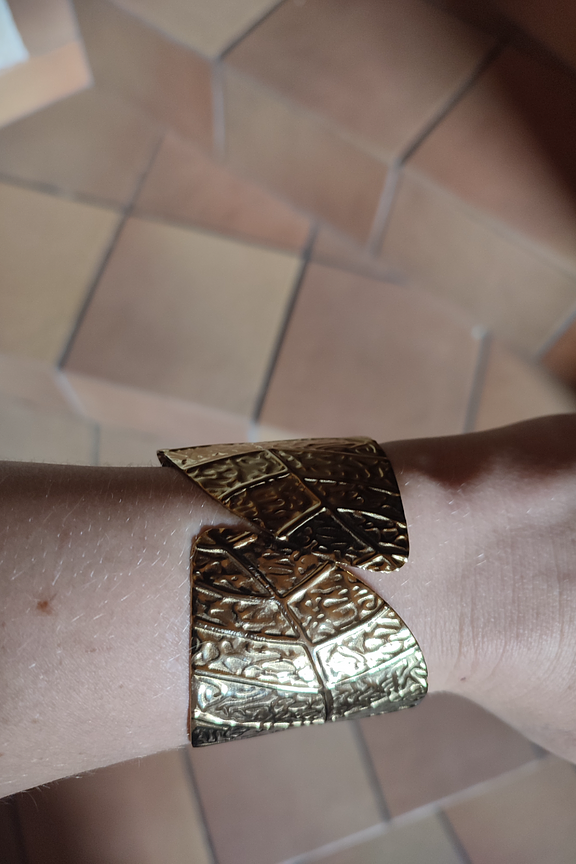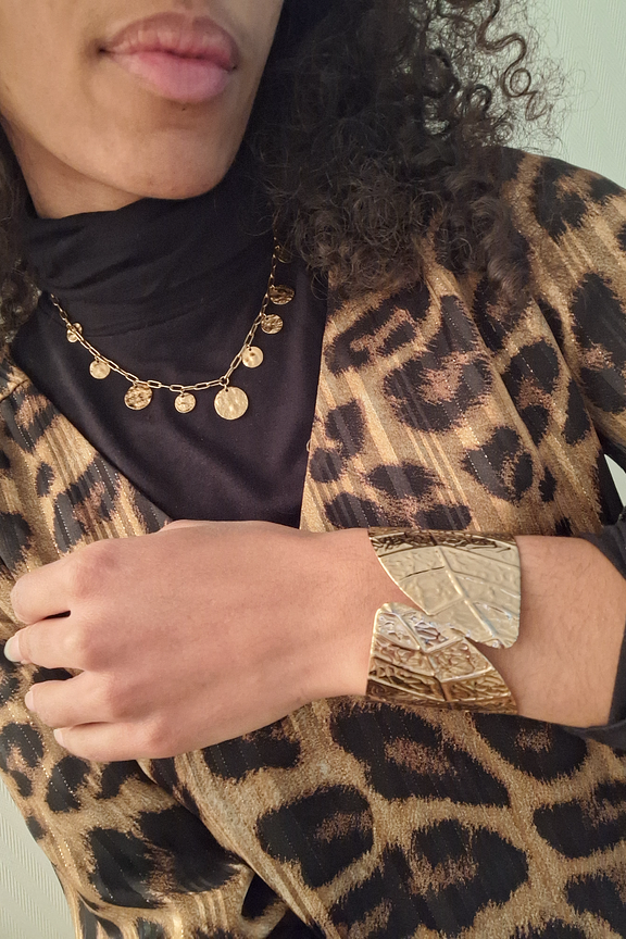 โข Large manchette dorรฉe โข Dรฉtails incrustรฉes pour donner du relief โข Forme lรฉgรจrement asymรฉtrique โข Ajustable