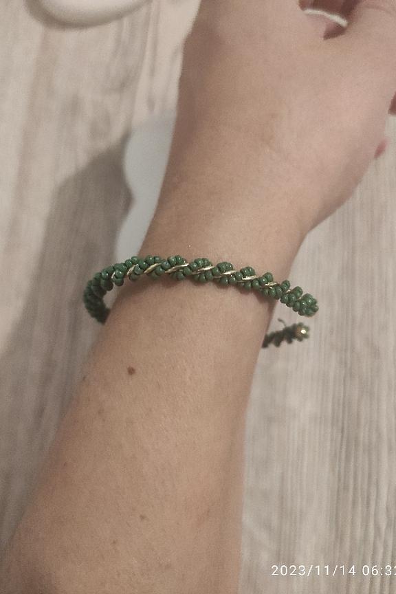 โข Bracelet type jonc en acier inoxydable โข dรฉcorรฉ avec des petites perles vertes โข Acier inoxydable