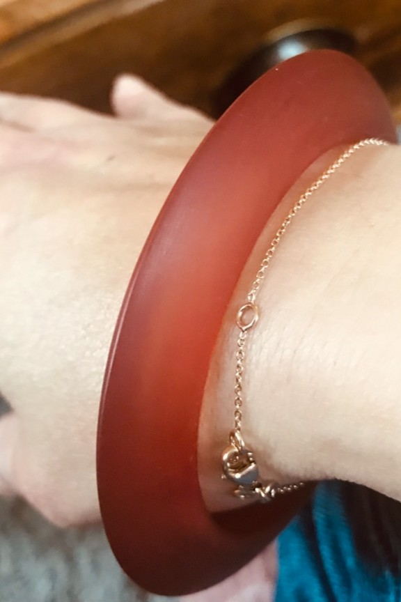 Ce jonc en acรฉtate รฉgayera vos tenues. โข Coloris Terracotta finition matte โข Effet verre soufflรฉ โข ร 6,5cm
