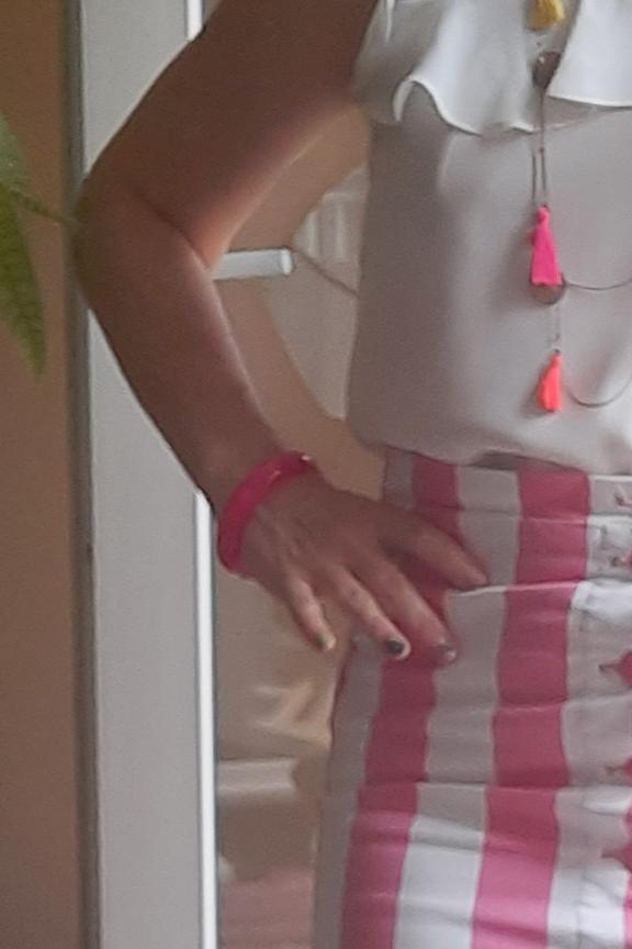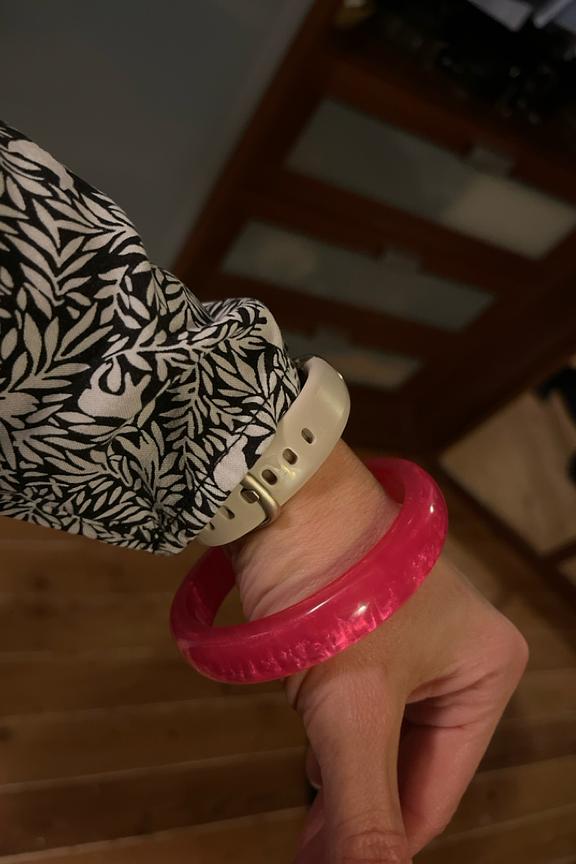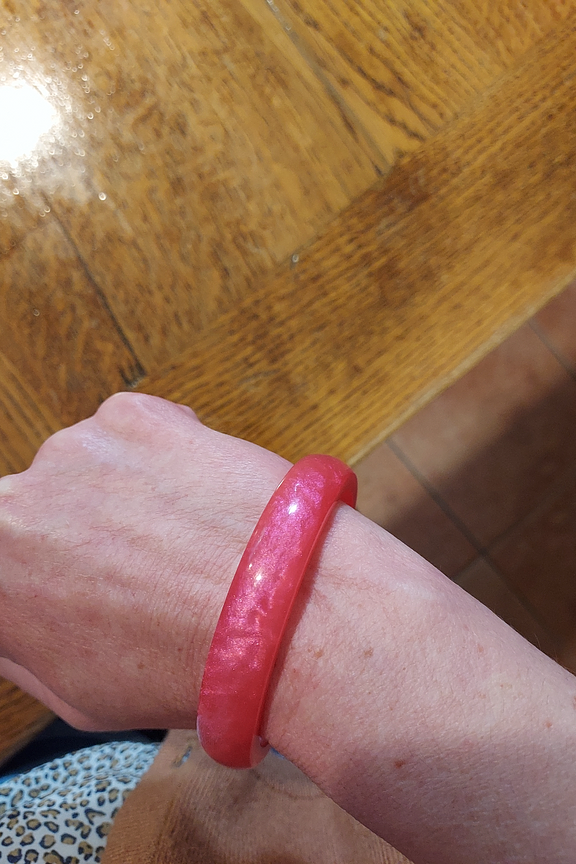โข Jonc fin arrondi en acรฉtate de couleur effet nacrรฉ โข Finition brillante et effet nacrรฉ โข ร 6,5cm - Largeur : 1,8 cm