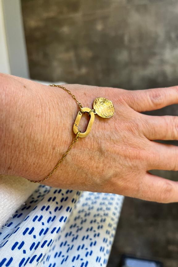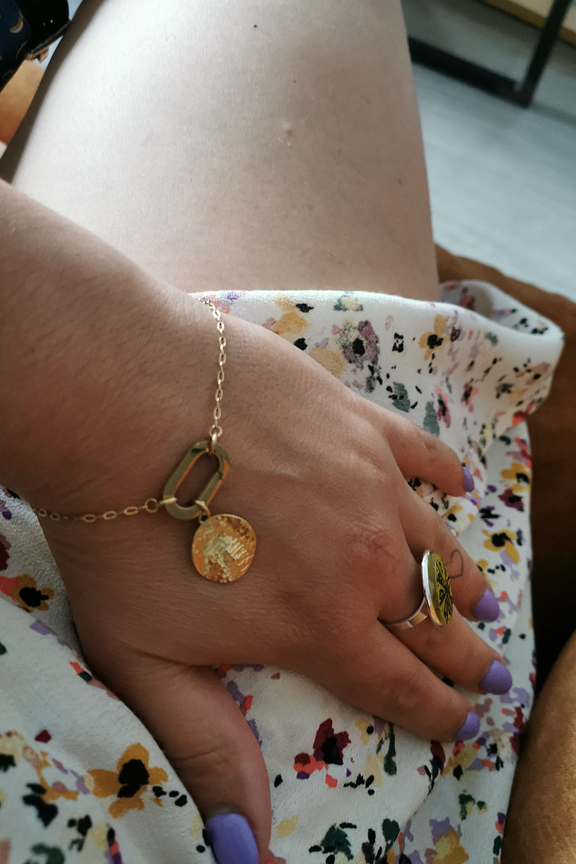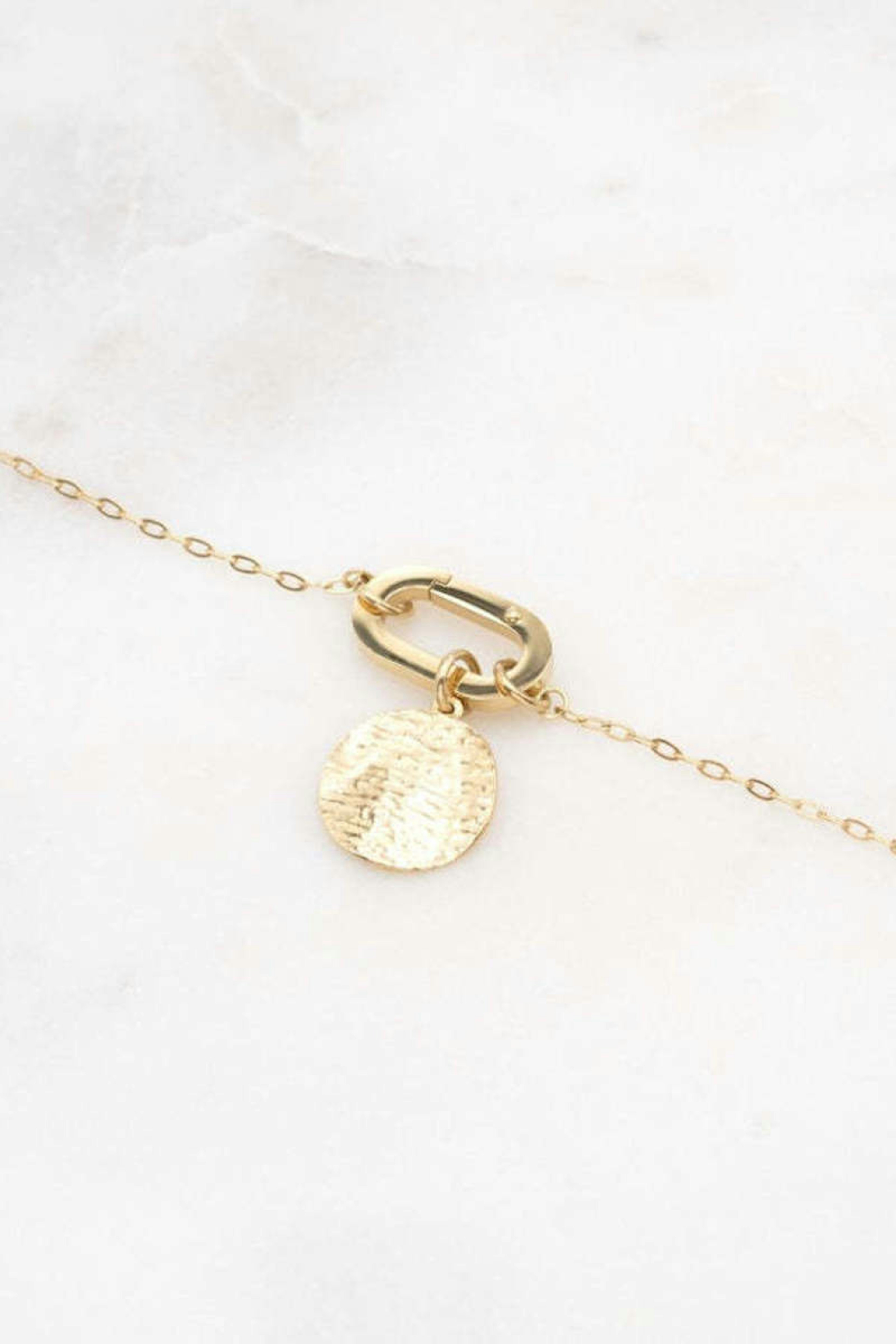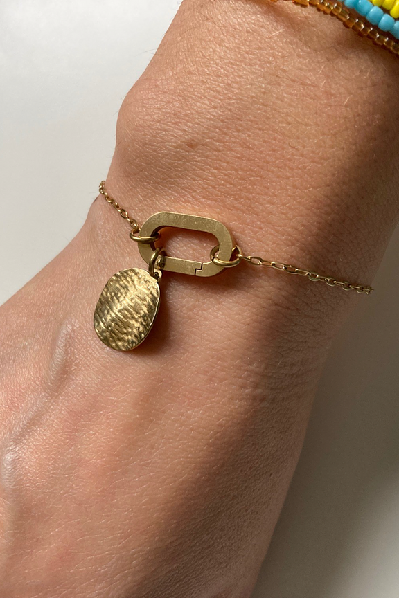 Bracelet sur chaine avec maillon rectangulaire et pampille martelรฉe. Disponible en dorรฉ et argentรฉ. โข Fermoir mousqueton โข Acier inoxydable โข Hypoallergรฉnique, ce bijou rรฉsiste ร l'eau et ne noircit pas โข Dimension:16,5+3 cm