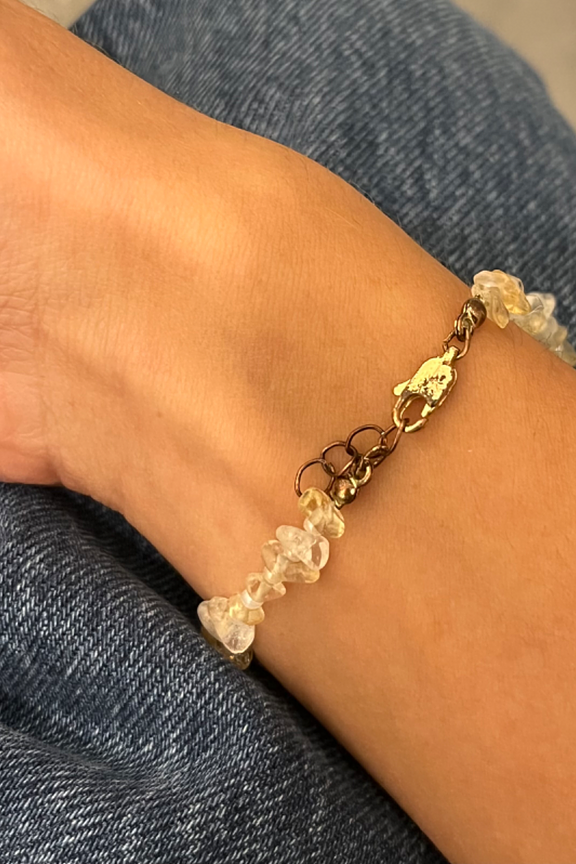 โข Bracelet en pierre de cristal โข Longueur rรฉglable avec une fermeture ร gรขchette en or