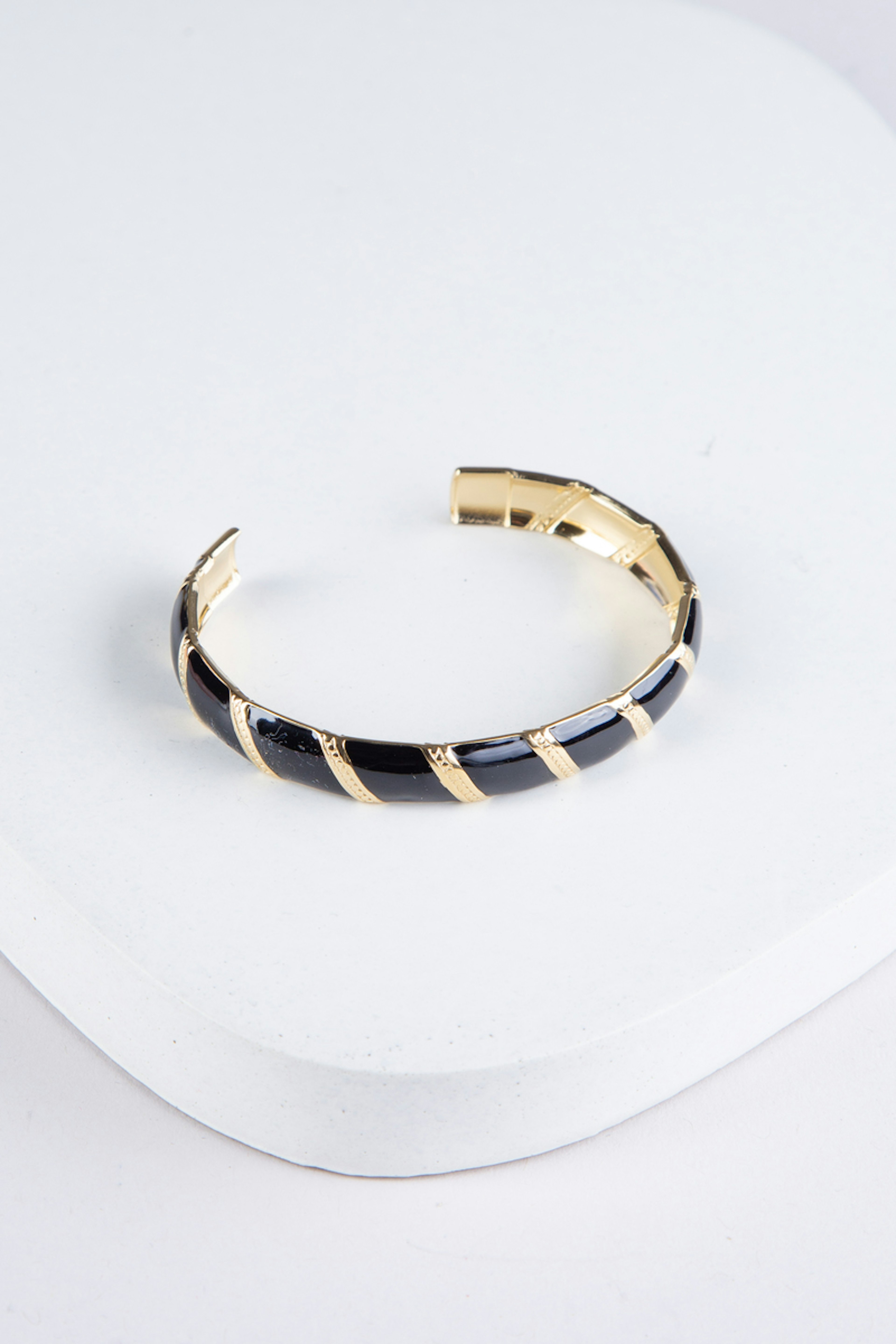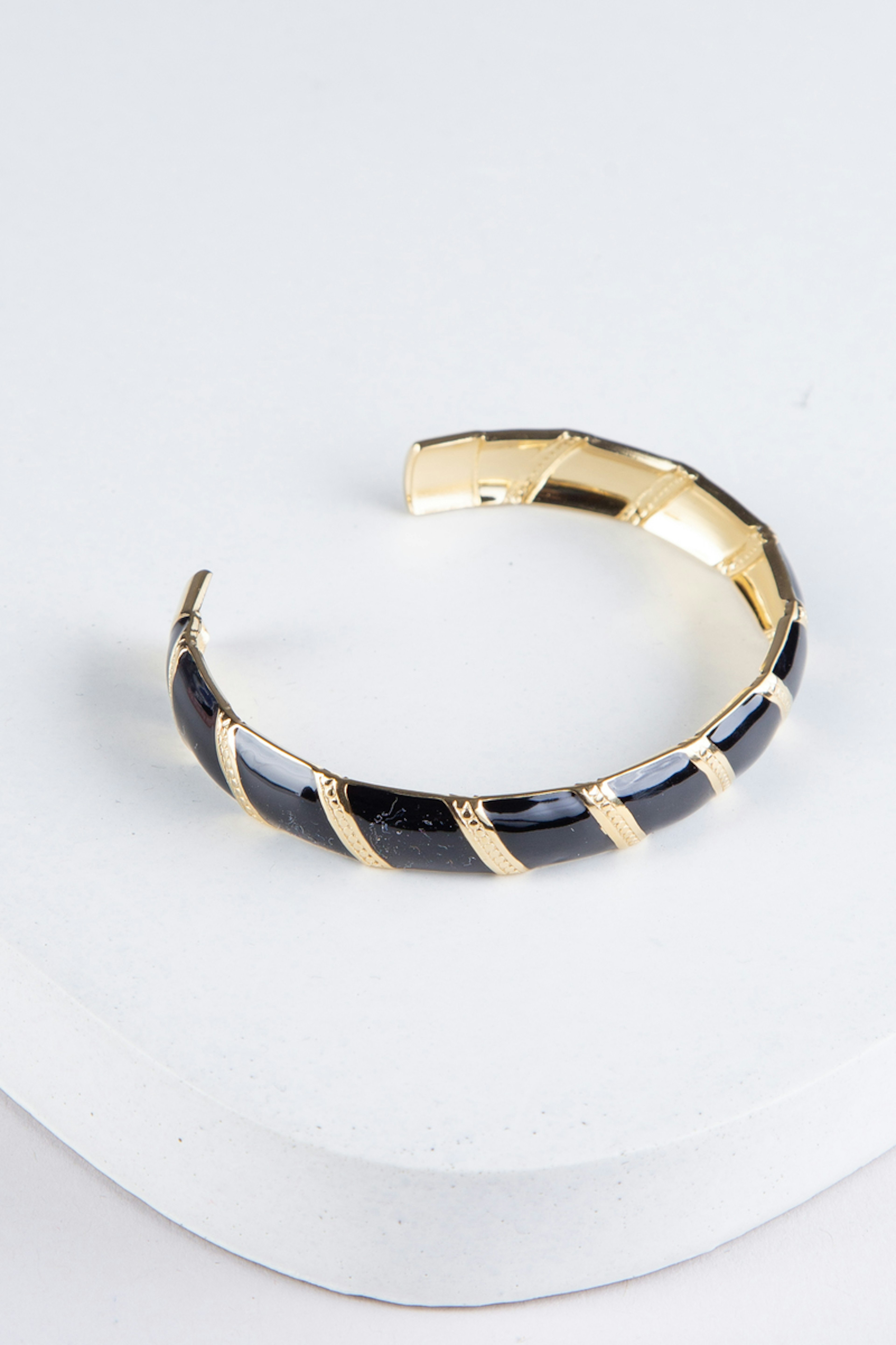 โข Jonc en acier inoxydable dorรฉ โข Effet torsade de noir โข Acier inoxydable