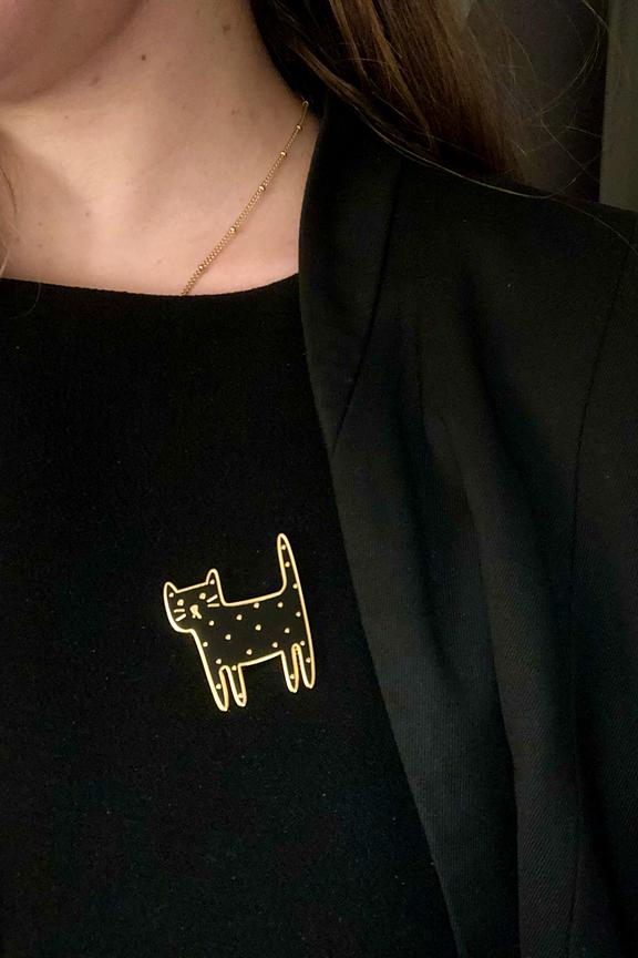 โข Broche en Zamac noir en forme de chat โข Pinโs dorรฉ placรฉ sur la partie haute โข Longueur x Hauteur : 3,8 x 3,3 cm