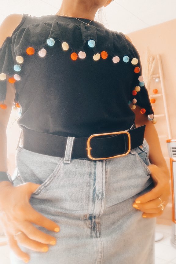 โข Ceinture en suรจde synthรฉtique โข Boucle mรฉtal en coloris or โข Longueur : 100cm