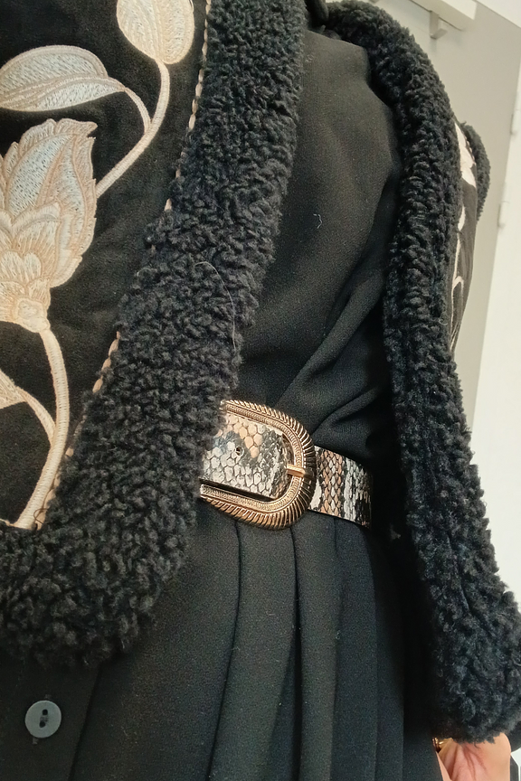 Ajoutez une touche sauvage ร votre tenue avec cette ceinture motifs python, idรฉale en toute saison pour cintrer une robe fluide ou sophistiquer un jean brut. โข Ceinture motifs python โข Boucle mรฉtallique dorรฉe โข Style ajustable