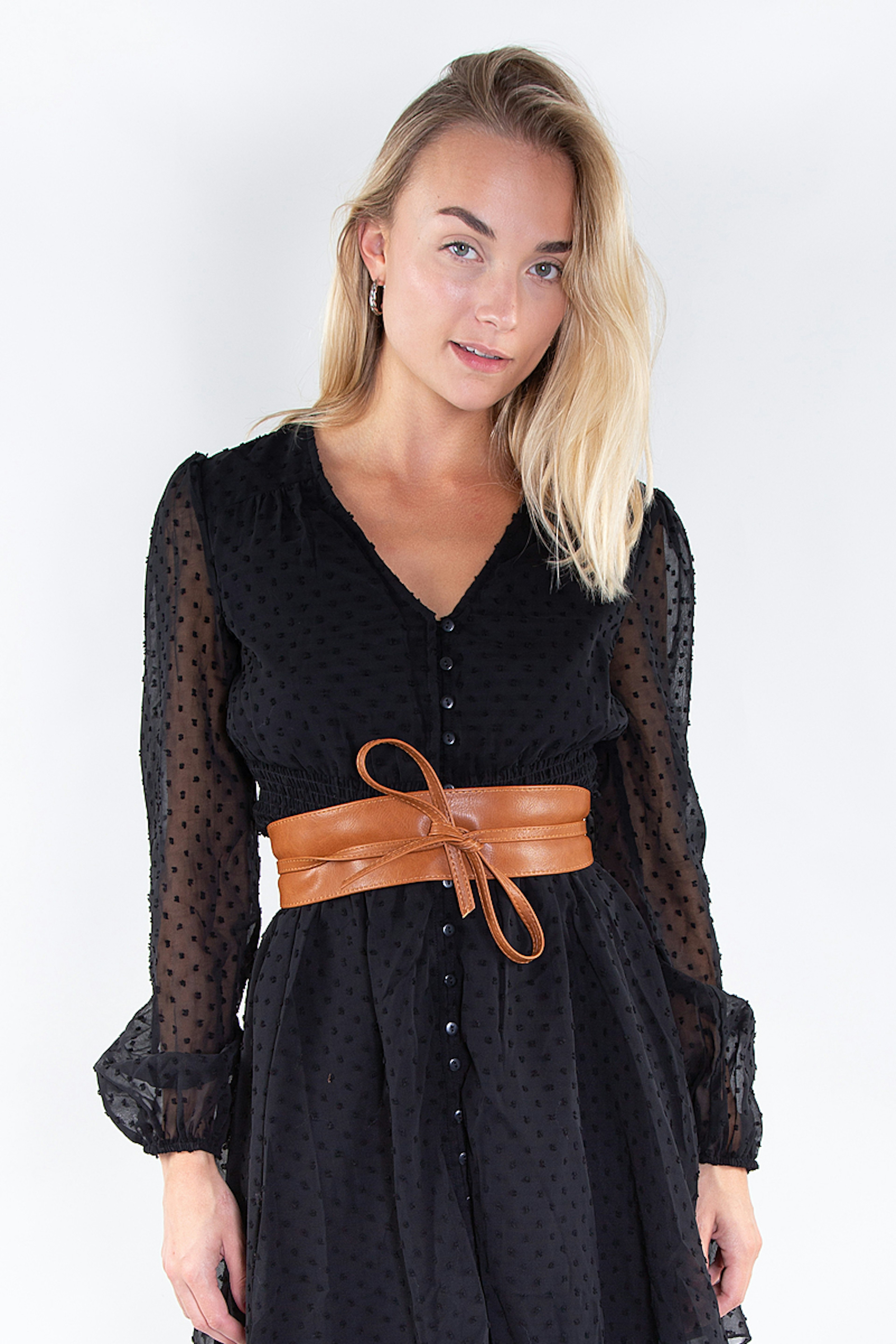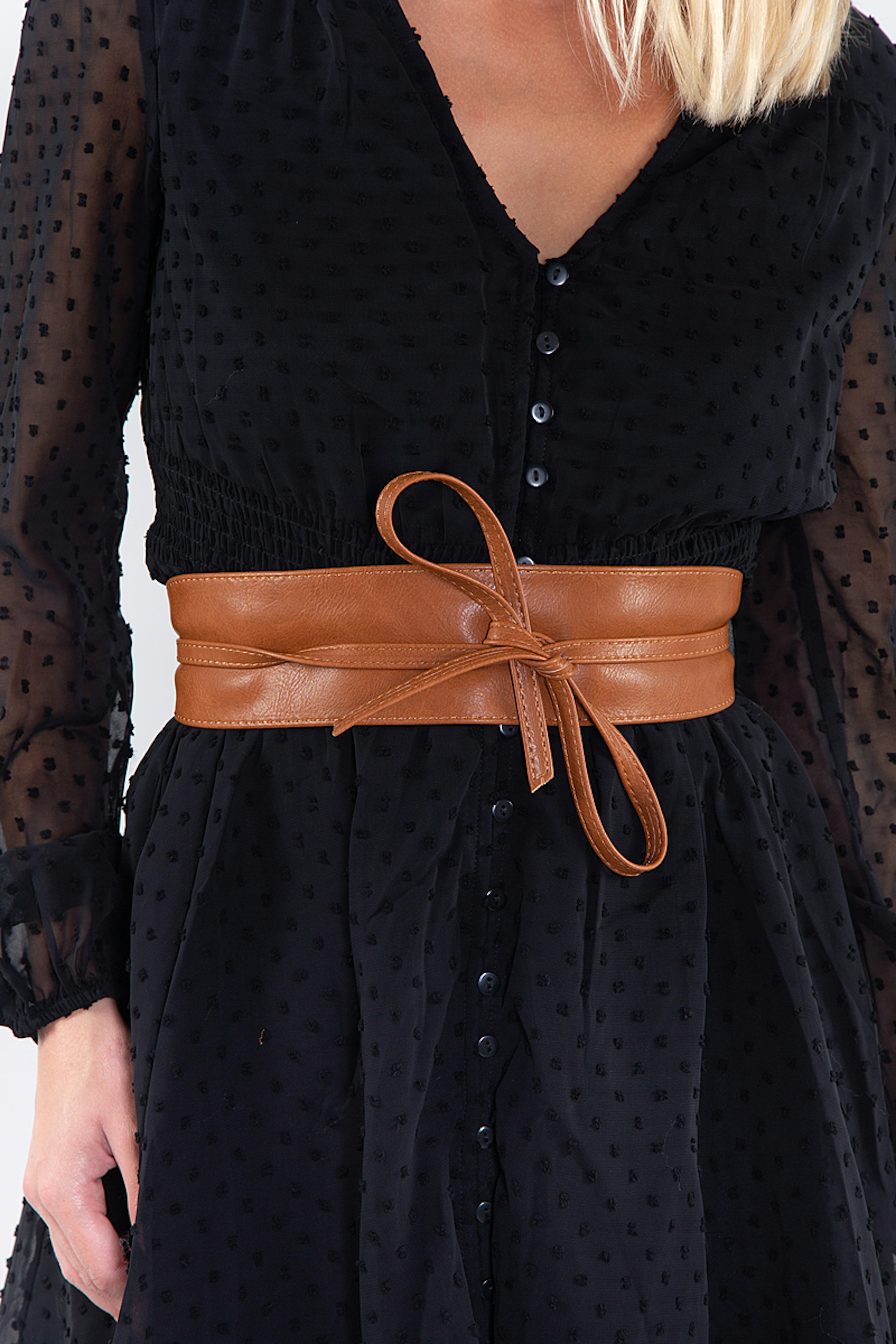 Cette ceinture est idรฉale pour accessoiriser vos tenues. โข Ceinture camel โข Forme obi โข 100% polyurethane