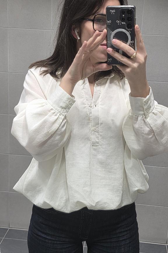 Ajoutez une jupe crayon et des escarpins pour un look chic, parfait pour l’hiver. • Chemise à manches longues • Coupe ample • Col rond • Poignets boutonnés • Tissu léger et fluide