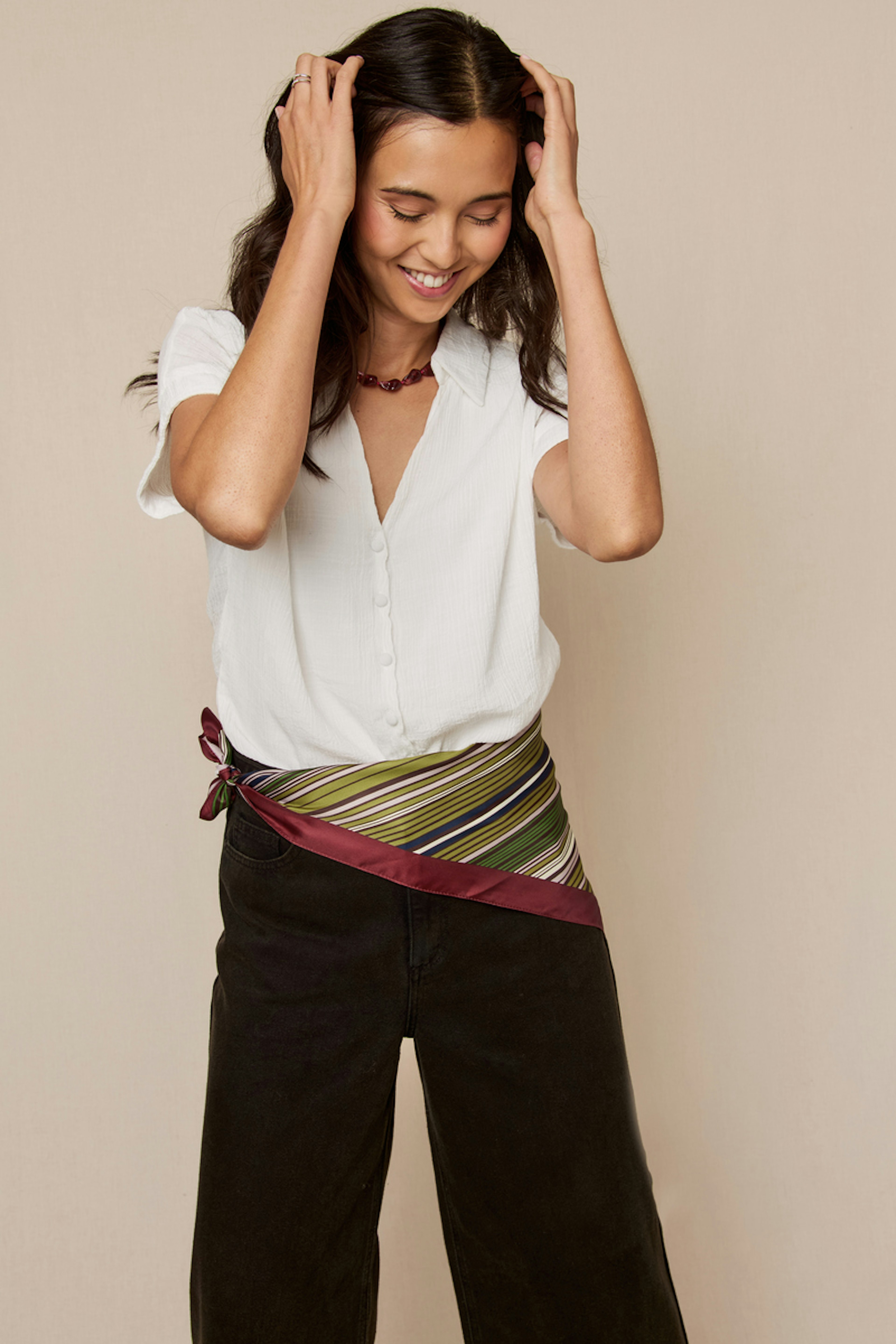 Ce haut léger se marie magnifiquement avec un jean taille haute pour un look estival parfait. Jouez avec des accessoires en rotin pour une touche naturelle. • Chemise à manches courtes • Encolure en V • Boutonnage devant • Texture légèrement gaufrée • Légèrement oversize