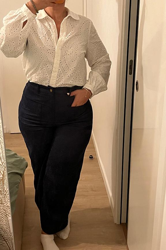 “Belle chemise avec broderie. Un peu serrée sur la poitrine”