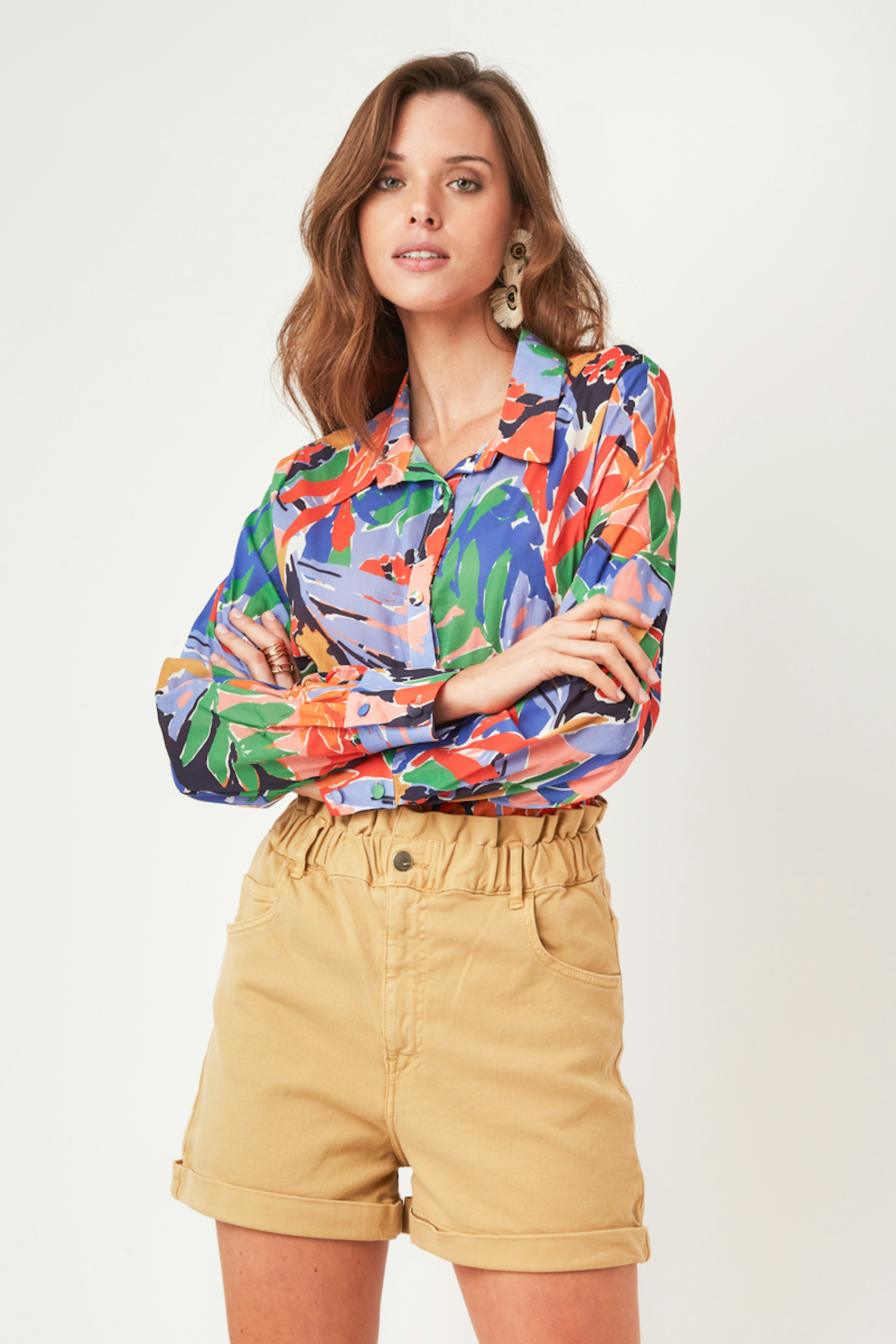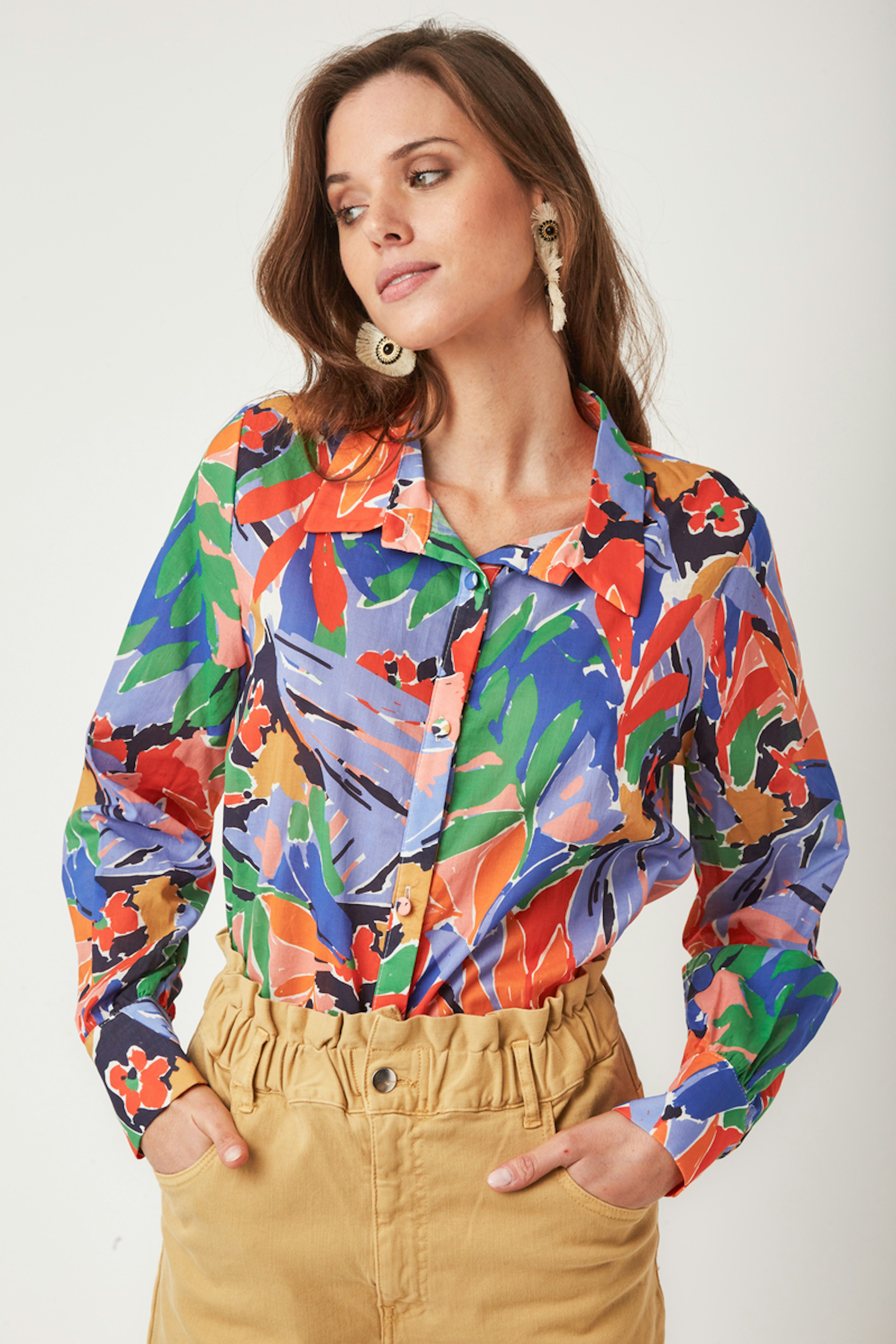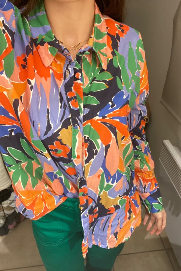 โข Chemise ร imprimรฉ vรฉgรฉtal colorรฉ โข coupe droite โข Col chemise โข Manches longues โข Poignets boutonnรฉes โข Boutons recouverts โข Cette piรจce taille normalement. Choisissez votre taille habituelle.