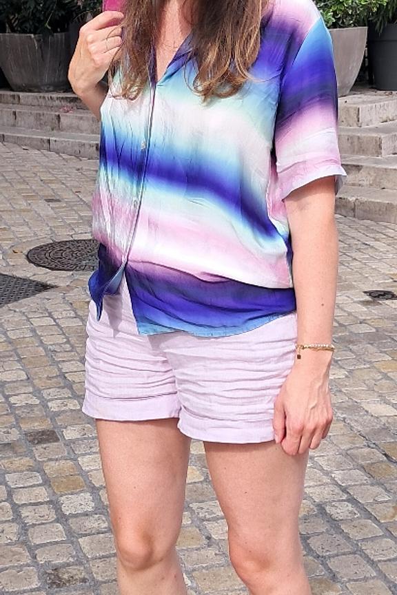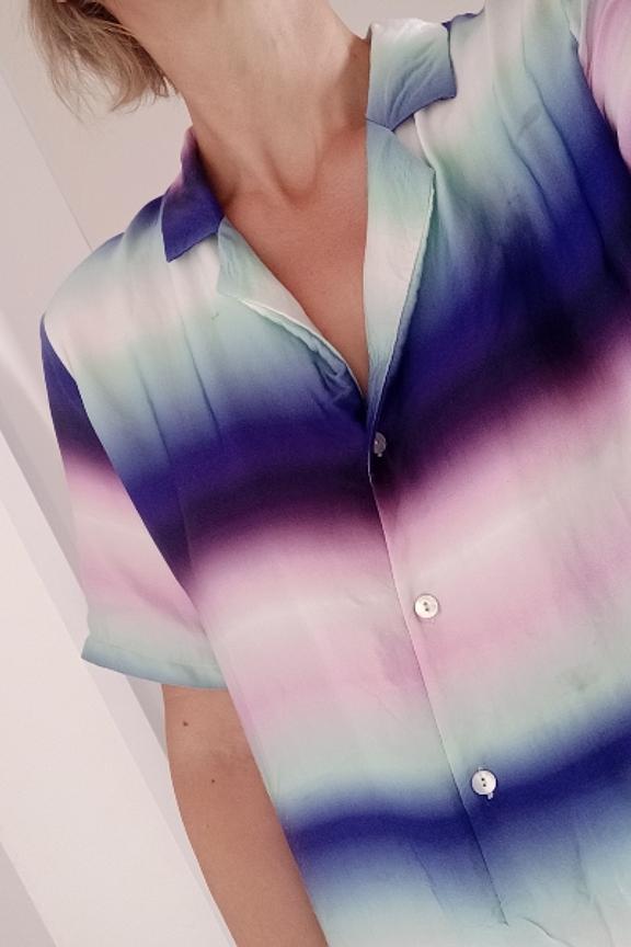 Craquez pour un été en aquarelle avec cette chemise FRNCH, parfaite avec un jean clair et des sandales dorées. La légèreté incarnée pour vos journées ensoleillées. • Chemise à manches courtes • Col classique • Imprimé tie-dye dynamique