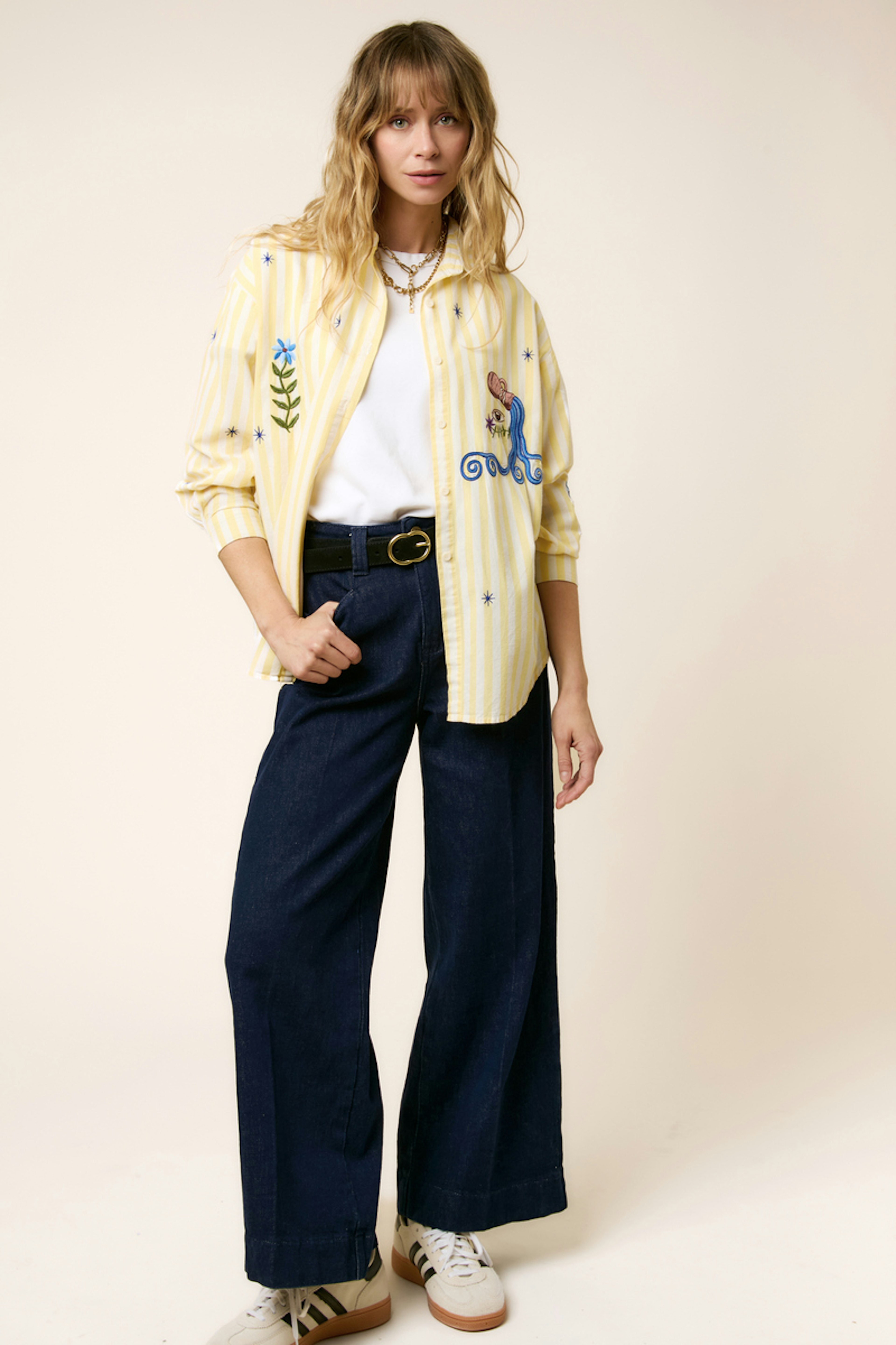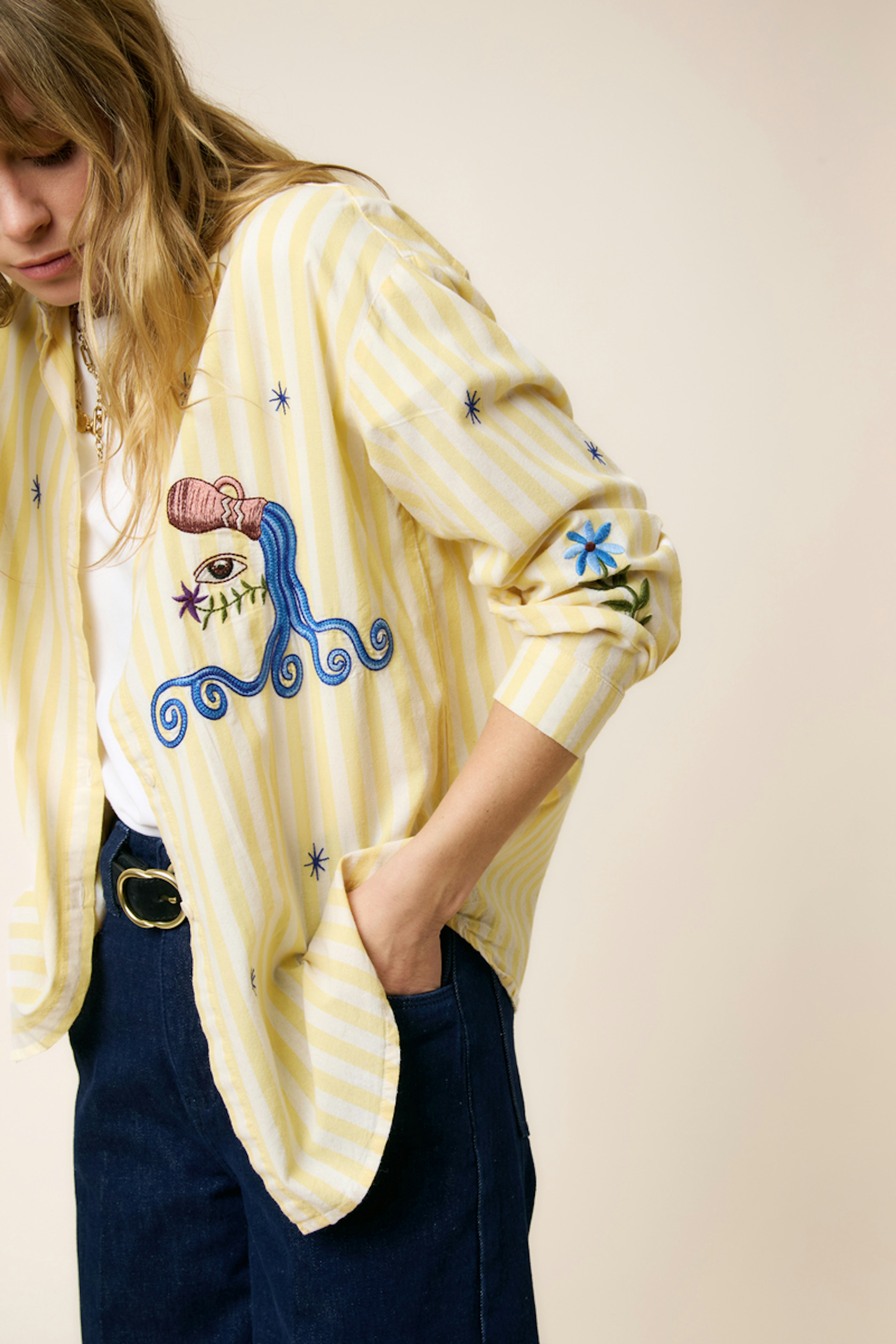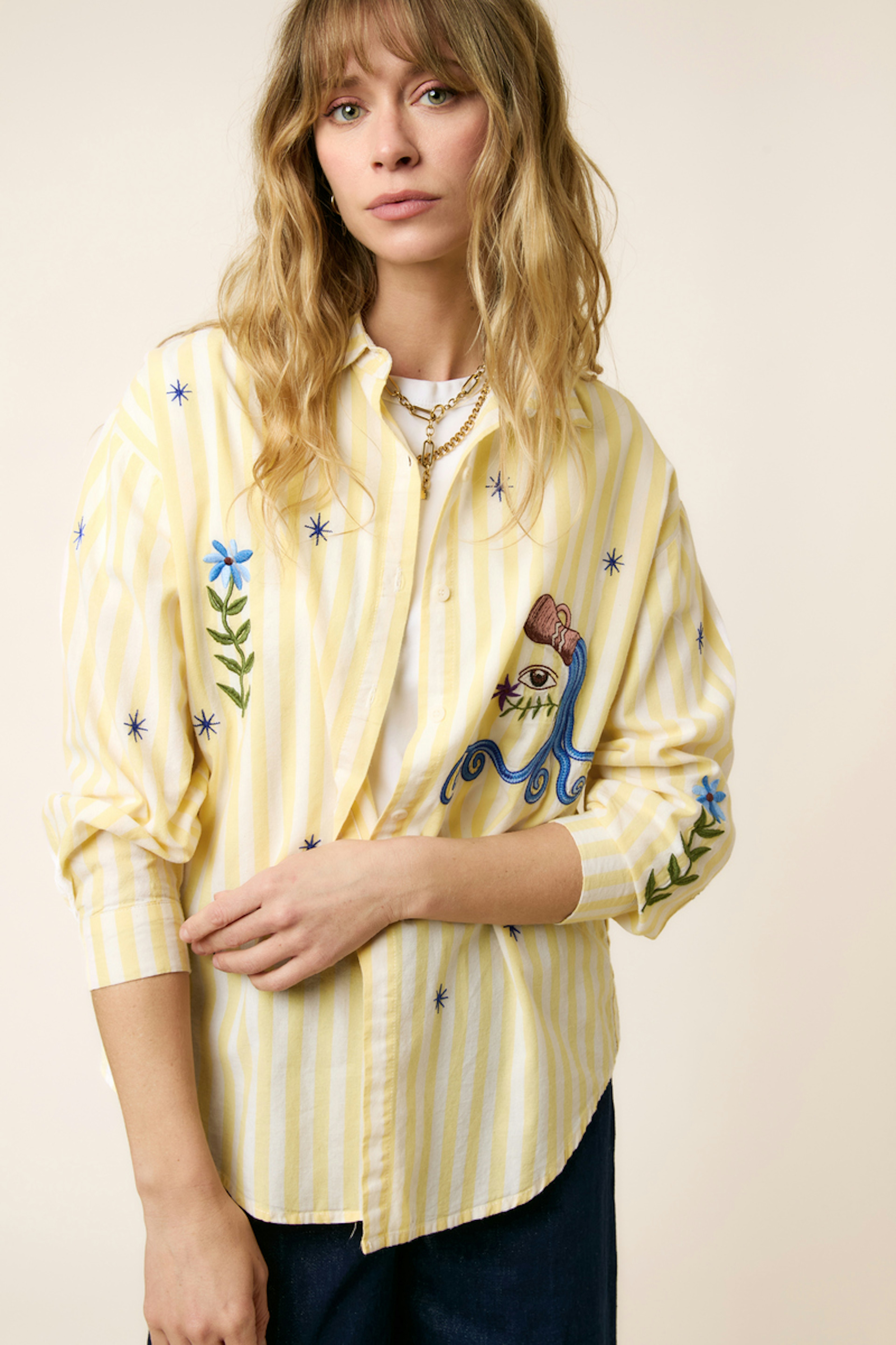 Pour un look estival décontracté, associez cette chemise à un jean clair et des sandales dorées. Idéale pour des journées ensoleillées. • Chemise en coton • Manches longues • Coupe ample • Col chemise • Motif imprimé graphique