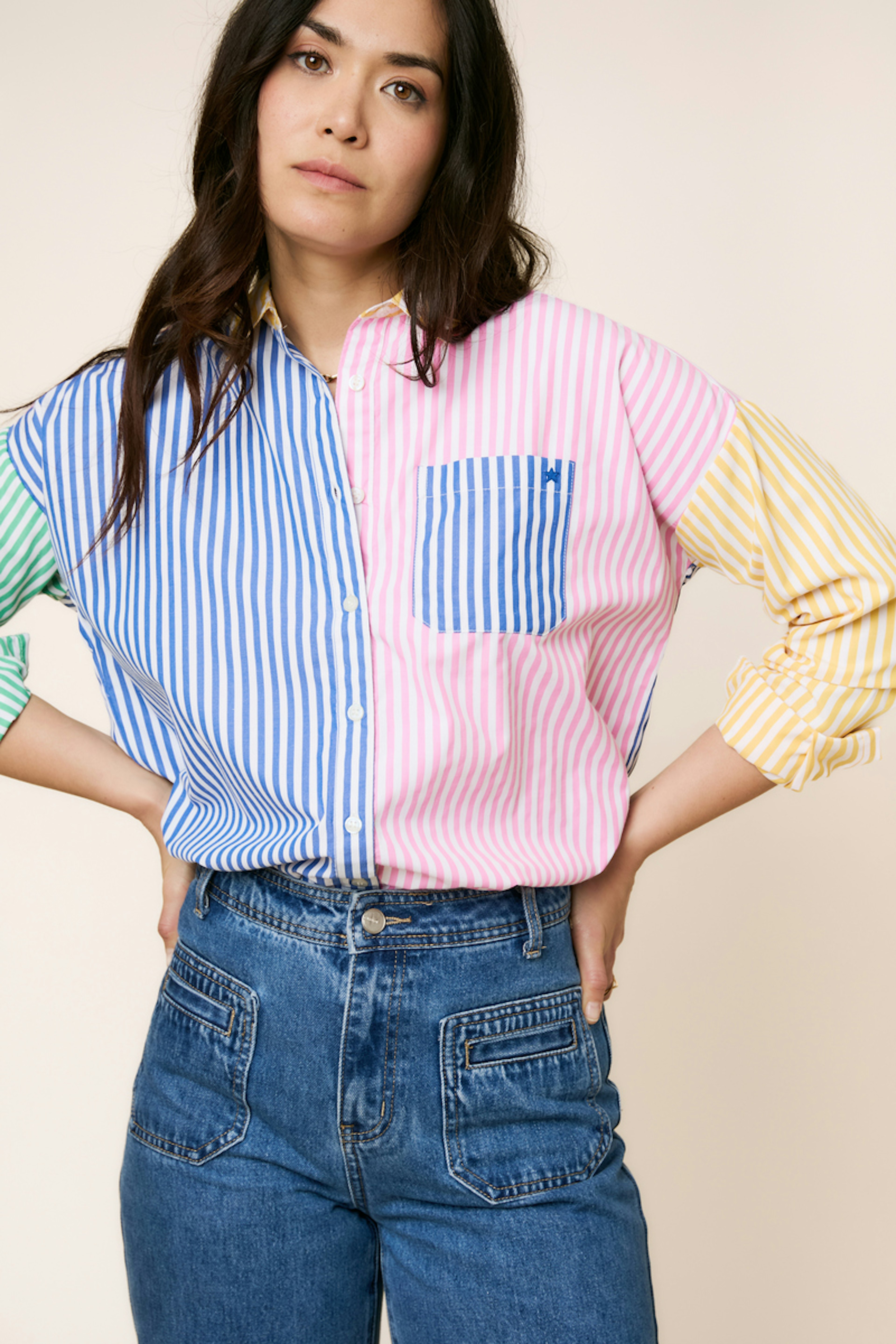Accordez cette chemise rayée à un jean slim et des baskets pour une allure chic et décontractée. Idéale à porter même en hiver sous un manteau chaud. • Chemise à rayures • Coupe ample • Manches longues • Col chemise • Motif imprimé amusant