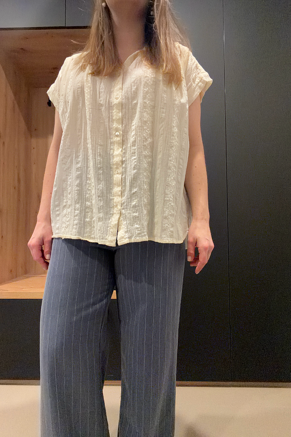 Cette chemise écrue en coton conviendra parfaitement avec un pantalon en lin beige pour un look estival chic et décontracté. Idéale pour les journées ensoleillées. • Chemise 100% coton • Manches courtes • Col chemise • Fermeture boutonnée • Tissu texturé