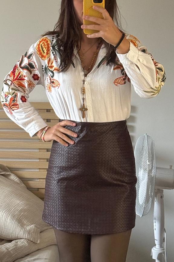 Associez cette chemise ร broderies vibrantes avec un pantalon fuselรฉ ou une jupe en jean. Idรฉale pour รฉgayer votre รฉtรฉ avec une touche de fraรฎcheur. โข Chemise blanche en coton โข Manches longues โข Col chemise โข Broderies florales โข Boutons discrets