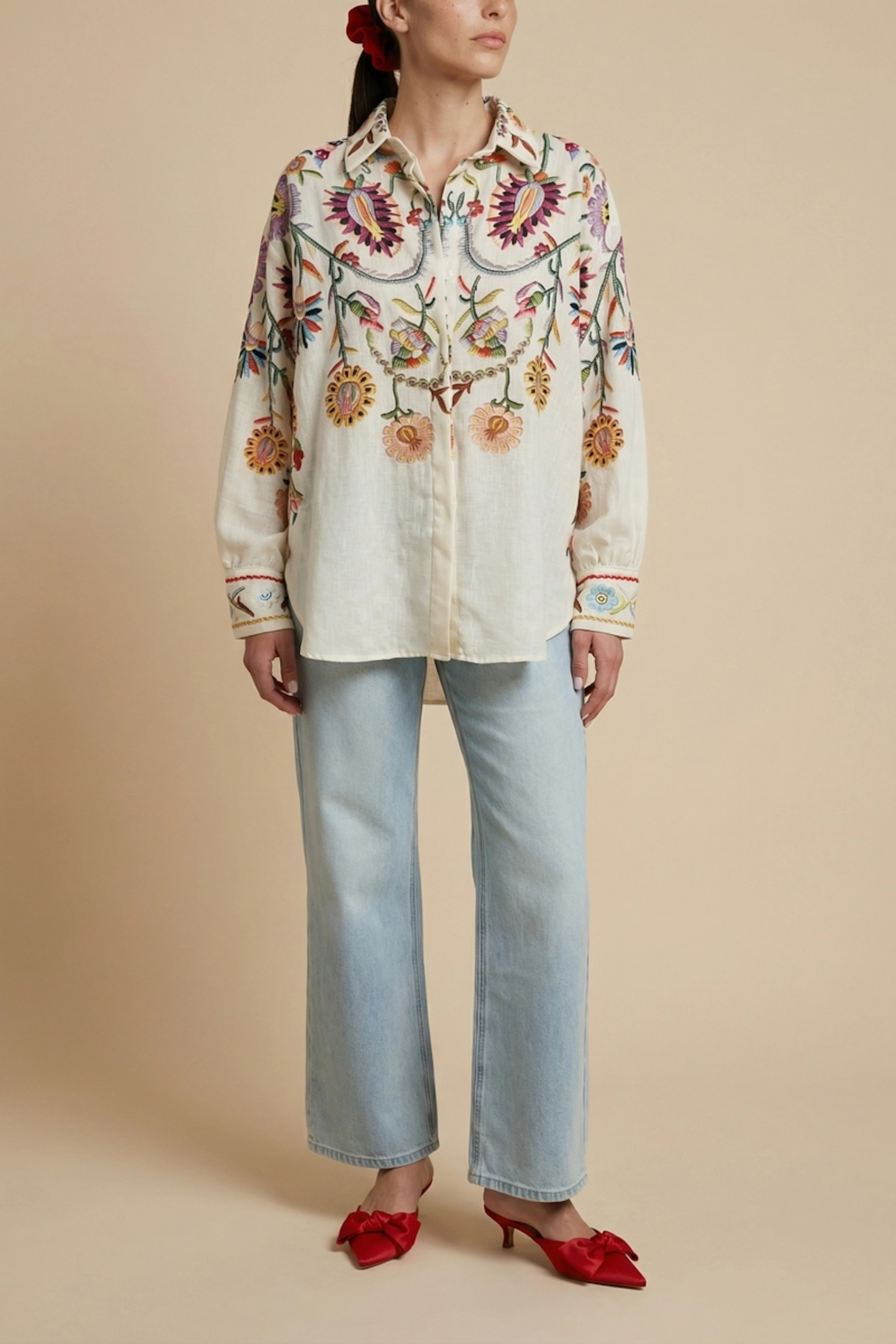 Associez cette chemise à un jean taille haute et à des sandales en cuir pour un look estival décontracté et chic. • Chemise à manches longues • Col chemise • Imprimé florale • Boutons sur le devant • Ourlets arrondis