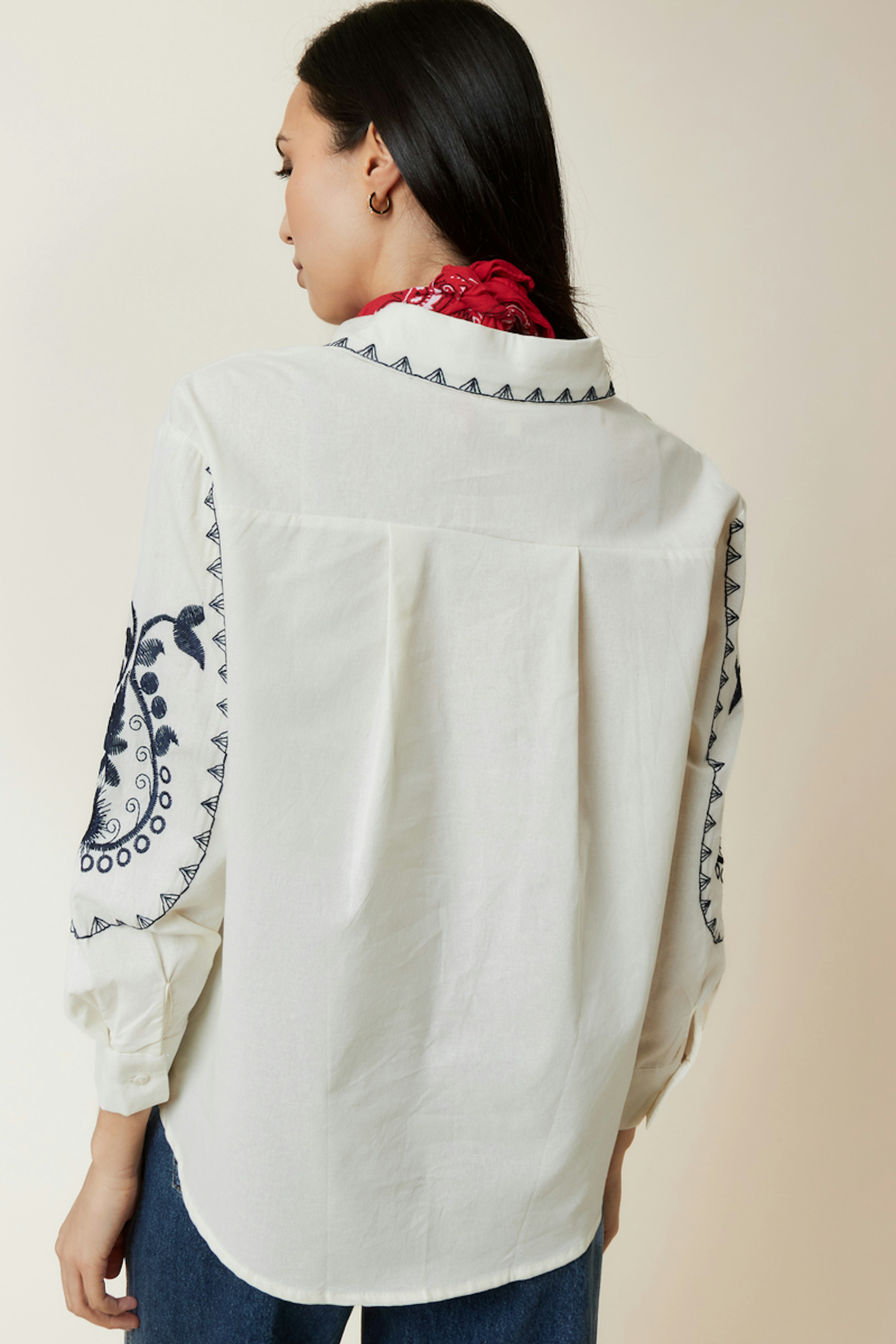 Portez cette chemise avec un jean taille haute et des bottines pour une allure chic en toute saison. • Chemise en coton • Col chemise • Manches longues • Imprimé floral • Coupe ajustée