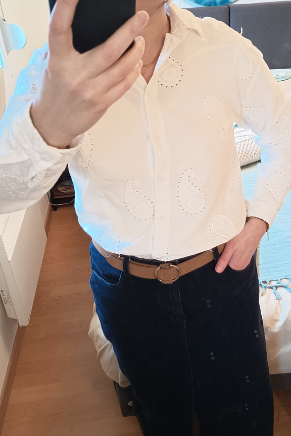 “Très belle chemise sympa à porter. Un peu transparente, mettre un top en dessous.”