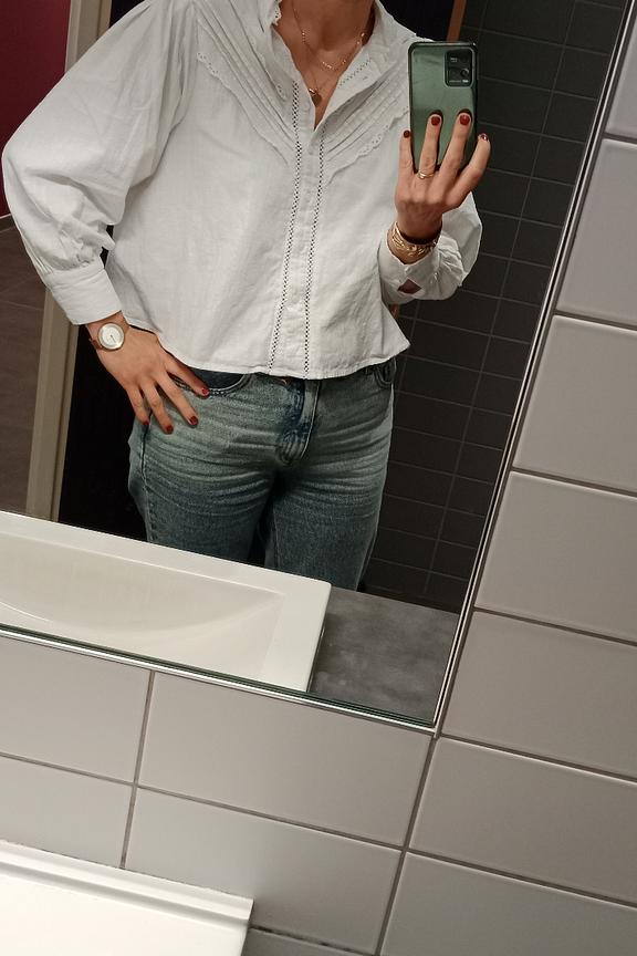 โ€œJoli chemisier. Manche fort serrรฉes au poignet. Assez court, ne rentre pas dans le pantalon.โ€