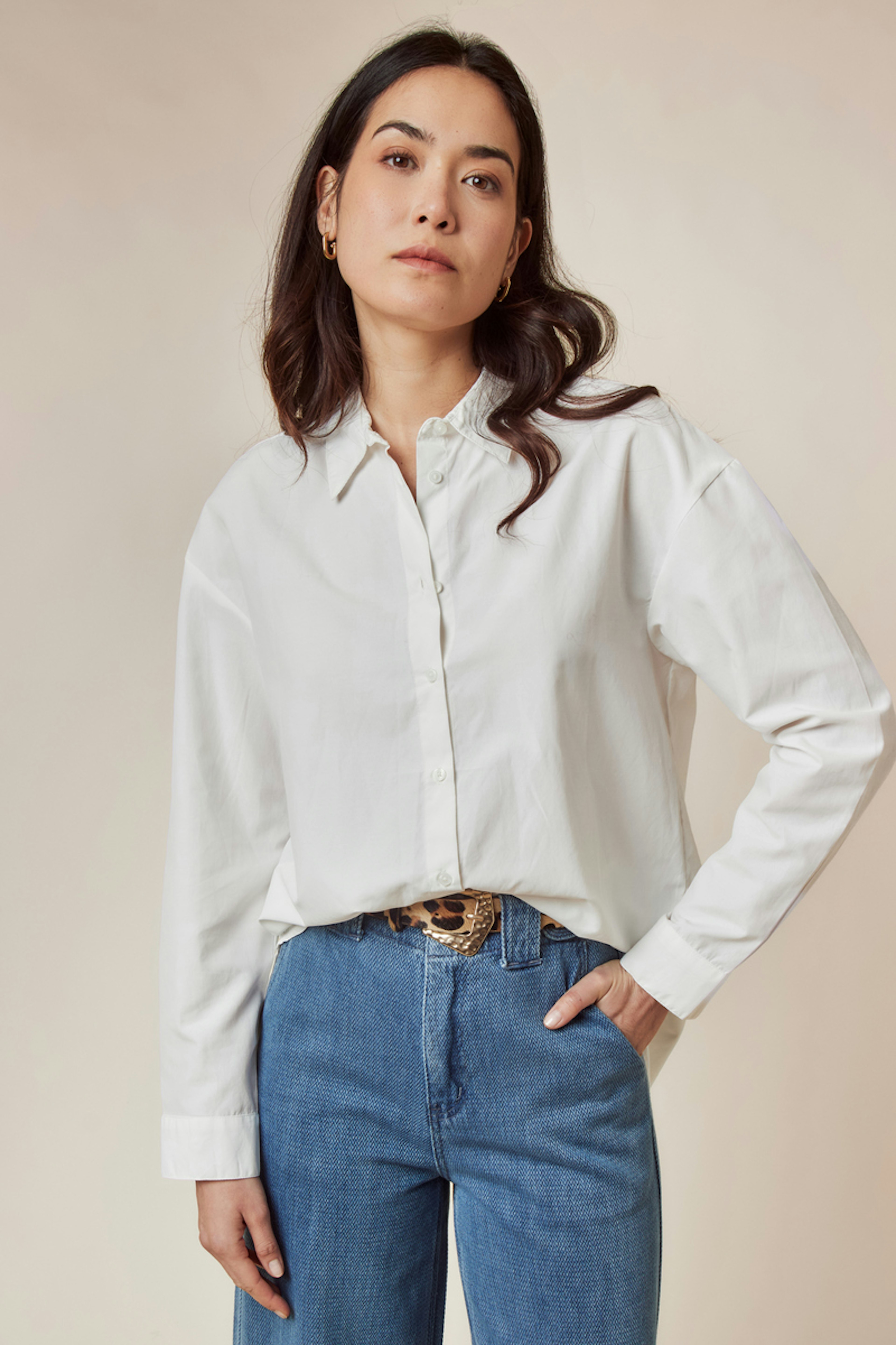 Associez cette chemise à un jean taille haute pour une allure chic et moderne en hiver. Ajoutez des bottines pour parfaire le look. • Chemise en coton-polyester • Coupe ample et confortable • Fente arrière stylée • Manches longues classiques • Inscription "Amour Toujours"