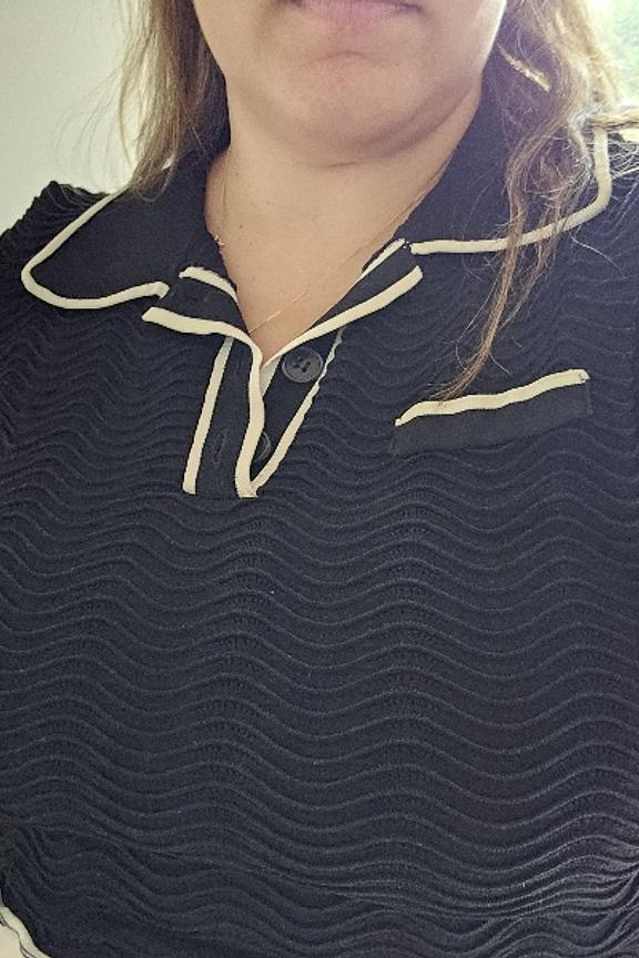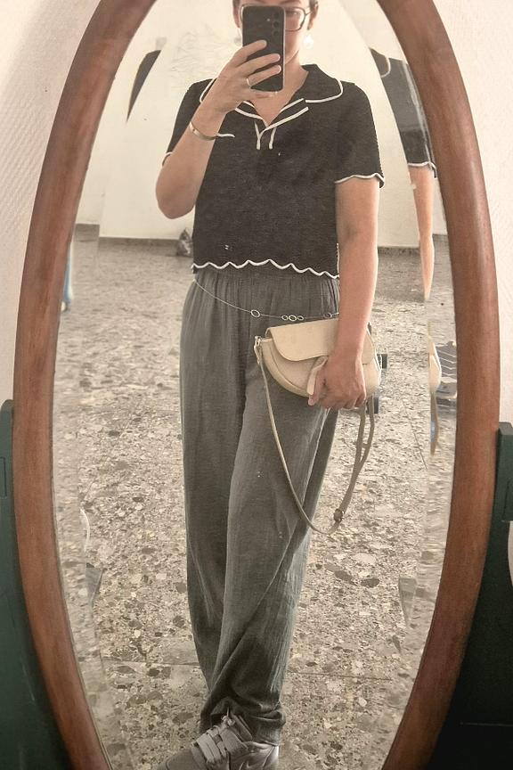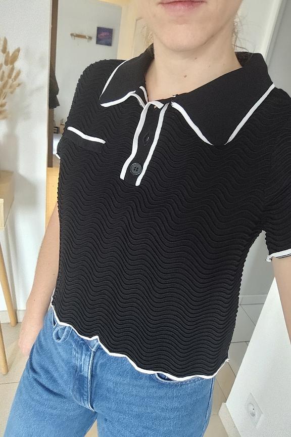 “Très joli, attention très court effet crop top. Mais sympa avec un pantalon ou une jupe très taille haute”