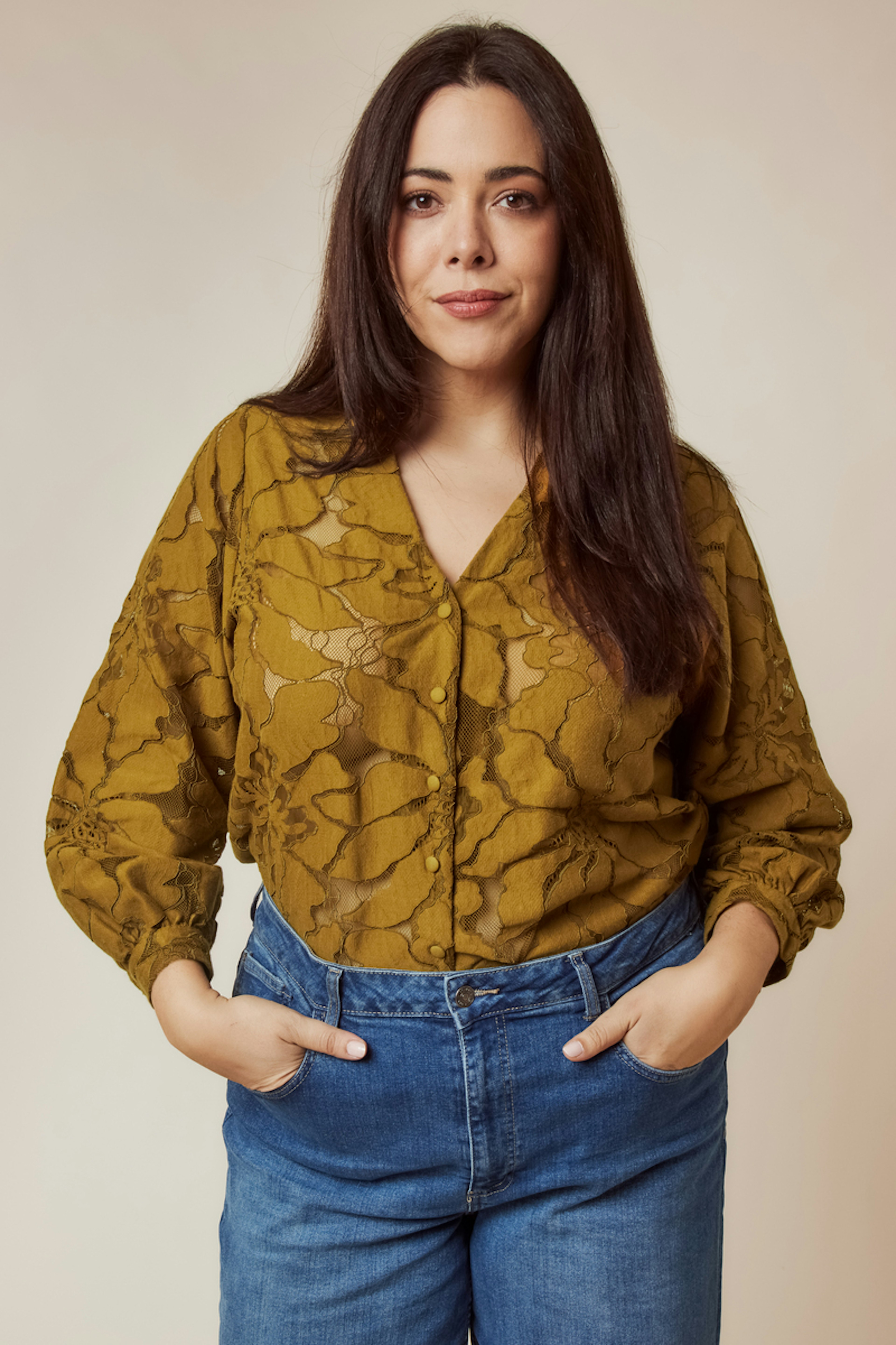 Associez cette chemise à un pantalon slim noir et des boots en cuir pour un look chic d'hiver. • Chemise à manches longues • Coupe ample et fluide • Motif floral • Col rond • Tissu semi-transparent