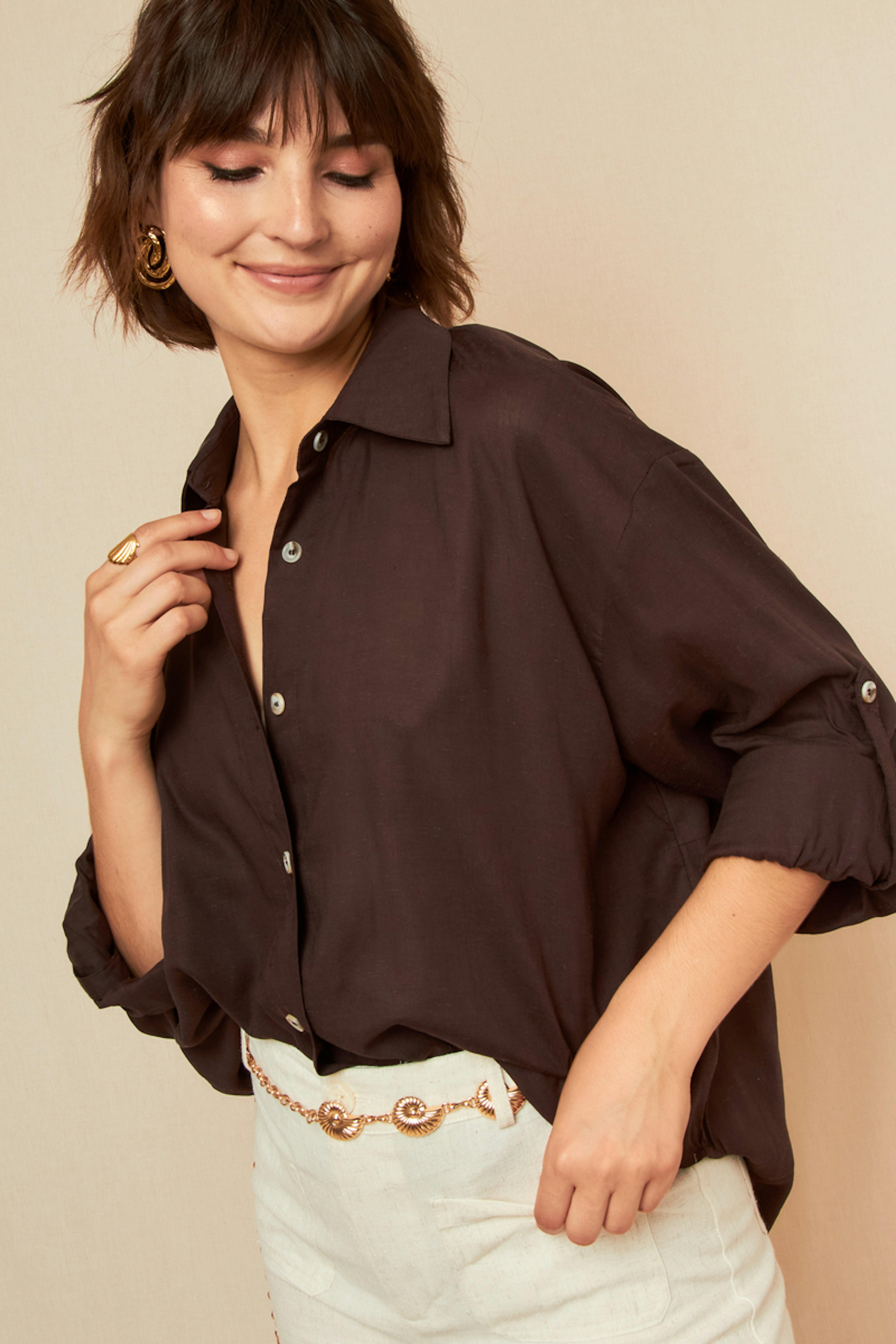 Associez cette chemise à un pantalon tailleur blanc et des escarpins pour une allure chic. Accessoirisez avec des bijoux dorés pour une touche sophistiquée. • Chemise à manches longues • Coupe classique décontractée • Col chemise • Patte de boutonnage visible • Ourlet arrondi