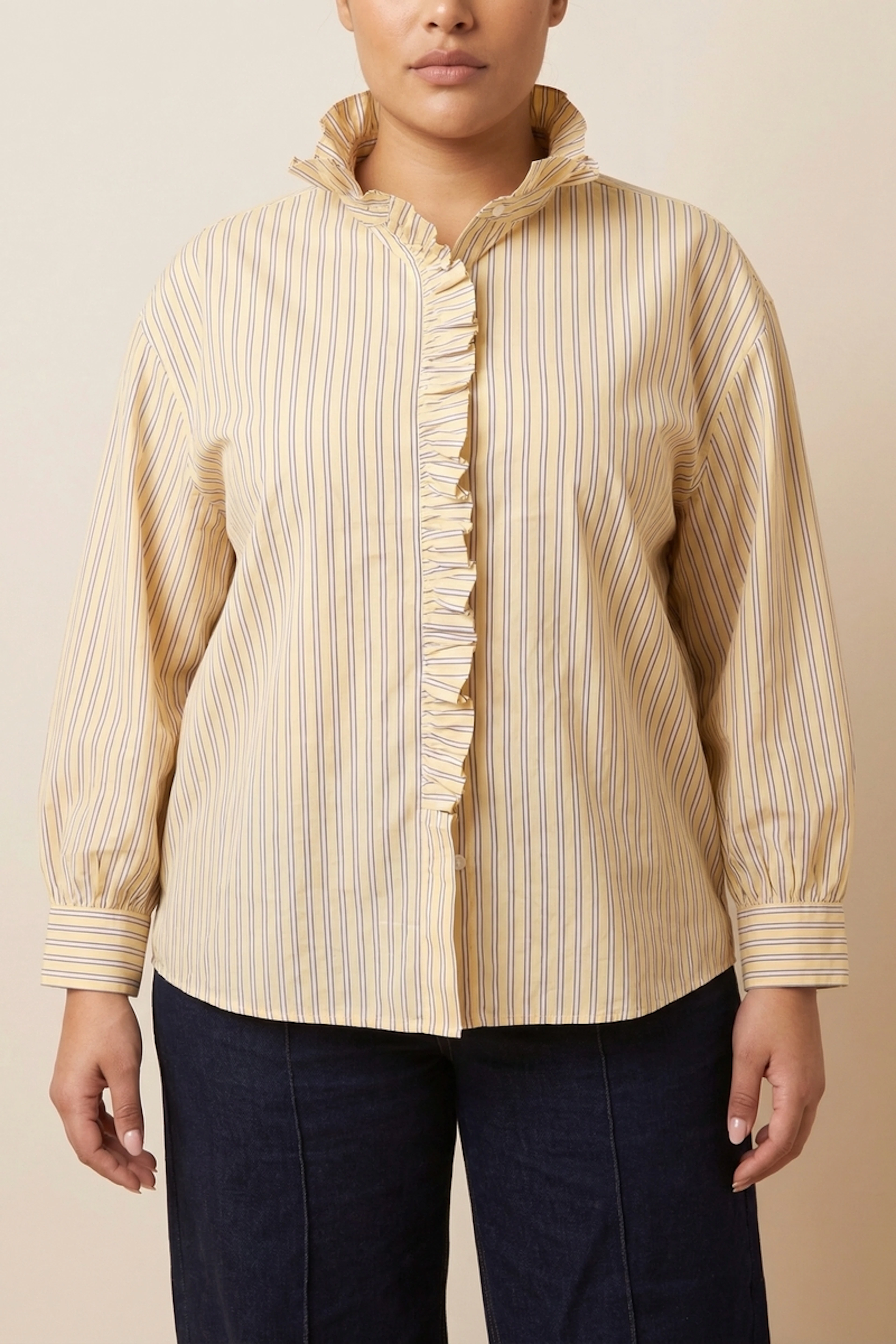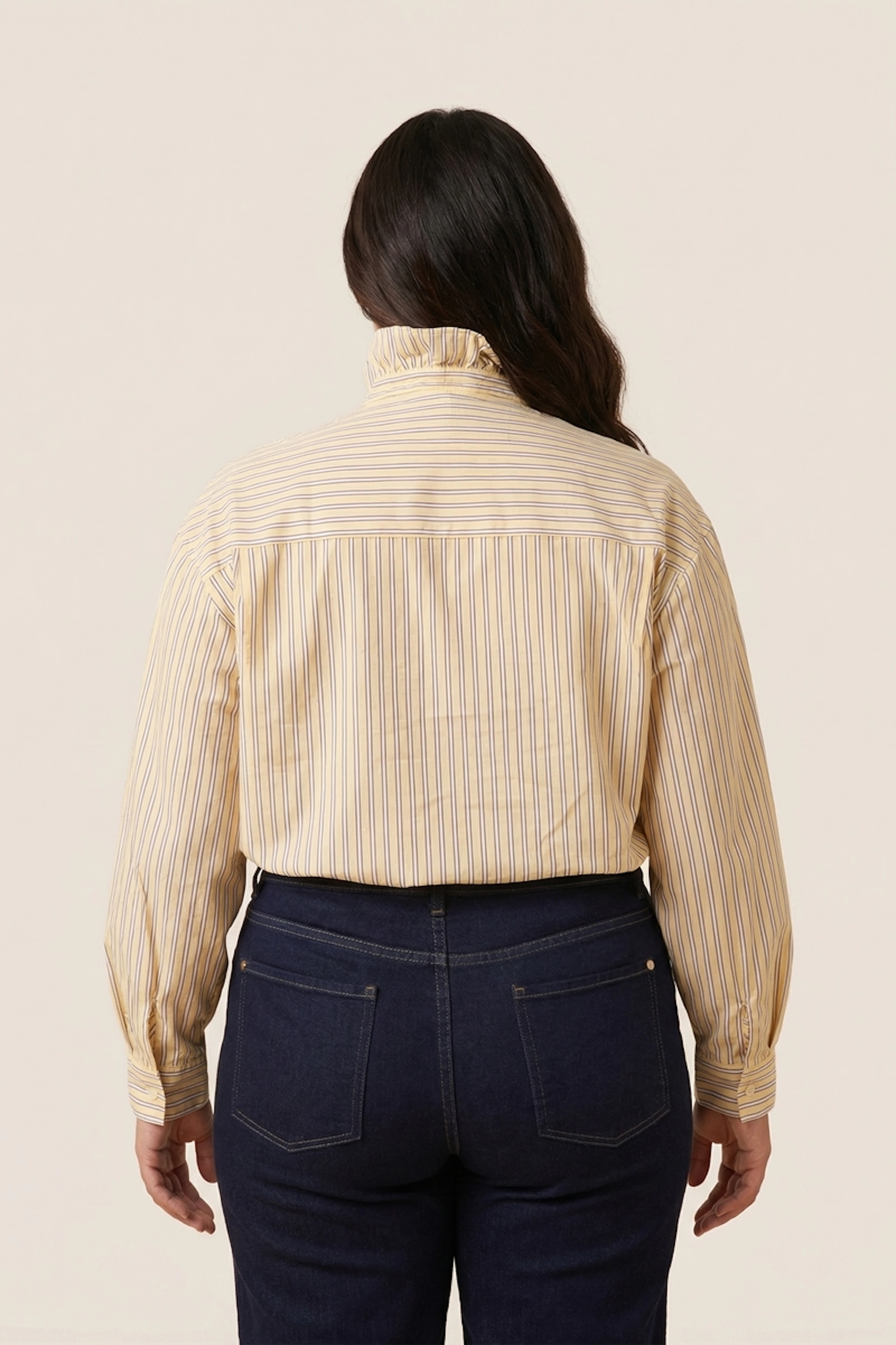 Associez cette chemise à un jean taille haute pour une allure chic et décontractée, idéale pour les journées d'été. • Chemise en coton • Coupe ample • Manches longues • Col chemise • Motif rayures