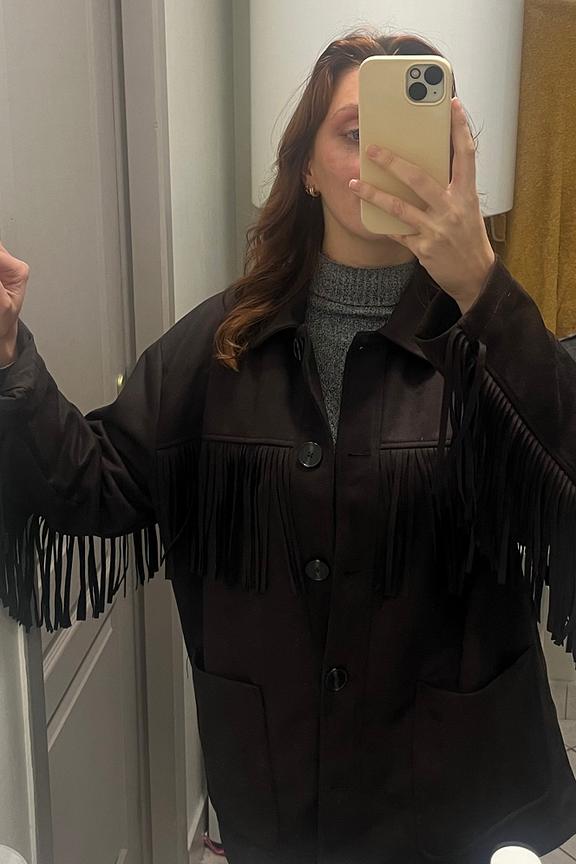 Pour un look chic et audacieux, associez-la à un jean taille haute et des bottines en cuir. • Chemise à franges • Coupe ample et décontractée • Fermeture à boutons • Col chemise • Franges décoratives